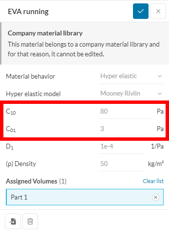 Looking at your model, the EVA you defined seems really soft (the values for \mathrm C_{01} and \mathrm C_{10} look pretty low). Where did you get the values for these parameters: