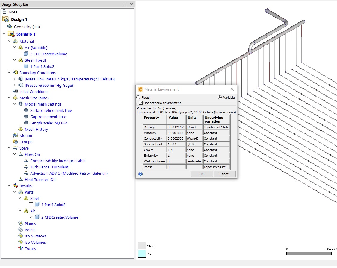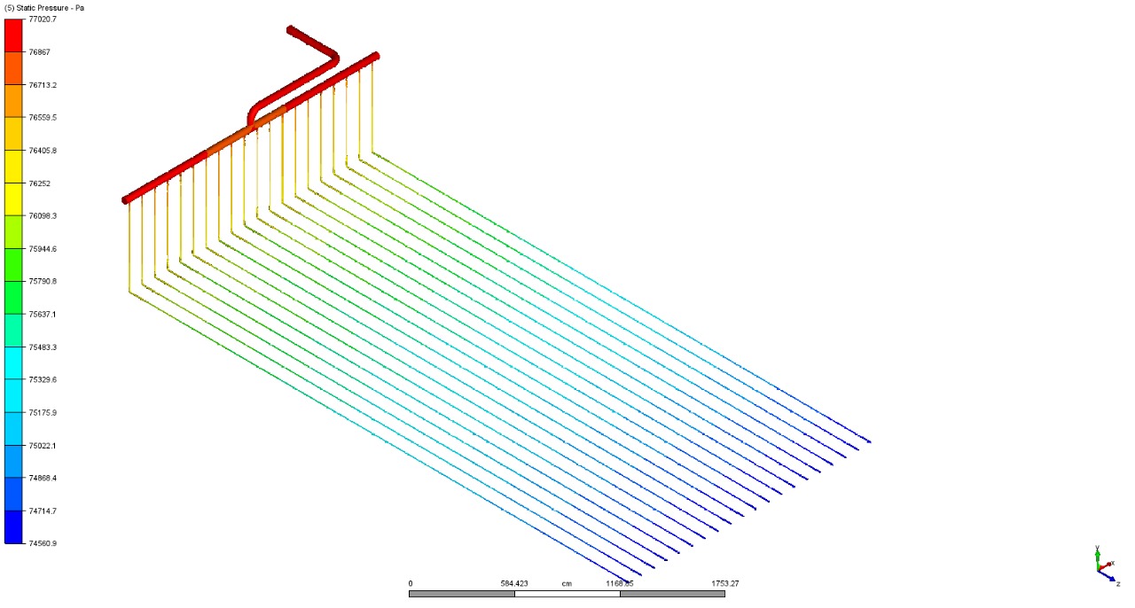 We are trying a ducting work for air distribution. We placed 1.4kg/s at duct inlet and atmospheric pressure at duct outlet and we have seen big differences between the results obtained here and Autodesk CFD. Double difference