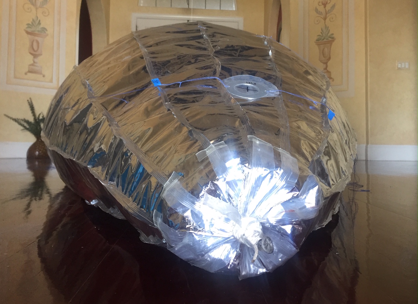 Here is the envelope partially inflated with almost zero gauge pressure in it. Any pressure in it is due to the weight of the envelope material itself (excuse the seam wrinkles, it was sealed by hand):
