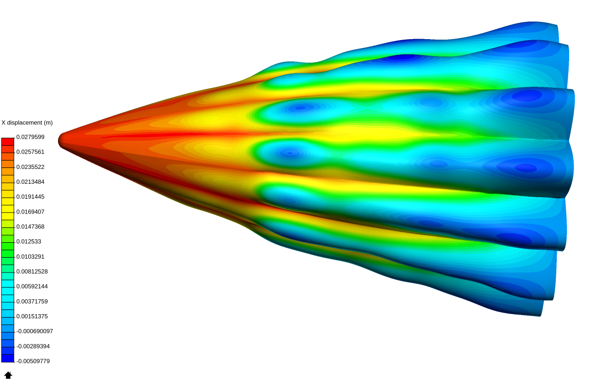We can also see in the results when we only plot the x-movement that there actually was a contraction of the model in X-direction and that the nose moved: