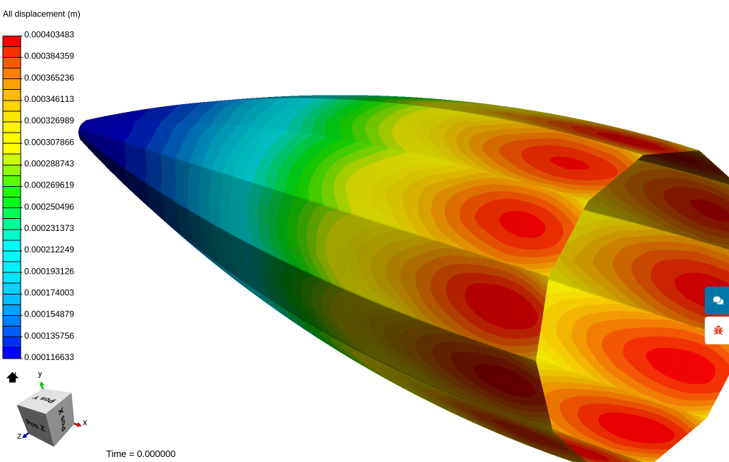 The nonlinear static analysis and follower pressure are available, but there is nothing here to model the âfabricâ material correctly. You might get with a very good second order mesh a somewhat qualitatively âreasonableâ result - but the mesh size would explode to several million nodes (it already has 730K nodes).