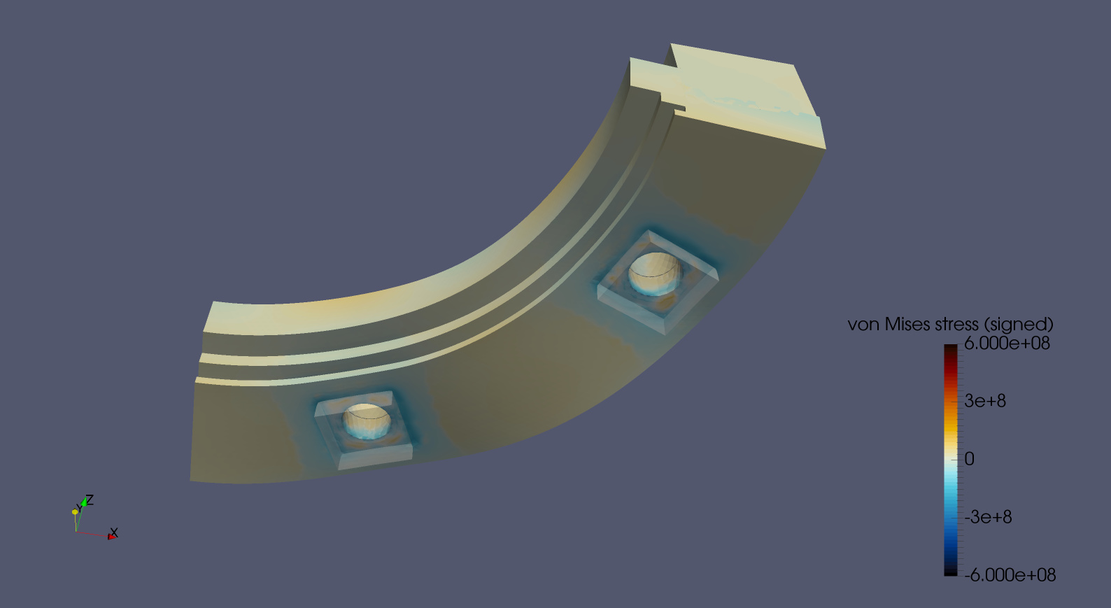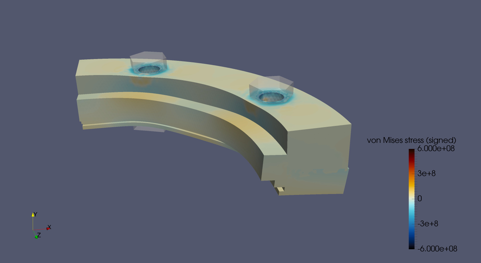 Edit: I calculated the preload to be 736360079 Pascals. Also these bolts are 1/2-13 Grade 8 SHCS. I ran a simulation from the copy I made of your simulation which I changed the constraints in. This simulation imitates what the ring looked like in the pictures. I’m going to take pictures of the cylinder the seal is attached to tomorrow and see if we have the bolt that failed. They were also torqued to 76 ft-lb I believe. Also the seal is made of 660 bronze and i believe the other part (the cylinder) is made of 1117 CD steel but I will double check on that tomorrow along with adding pictures of the rest of the assembly.
