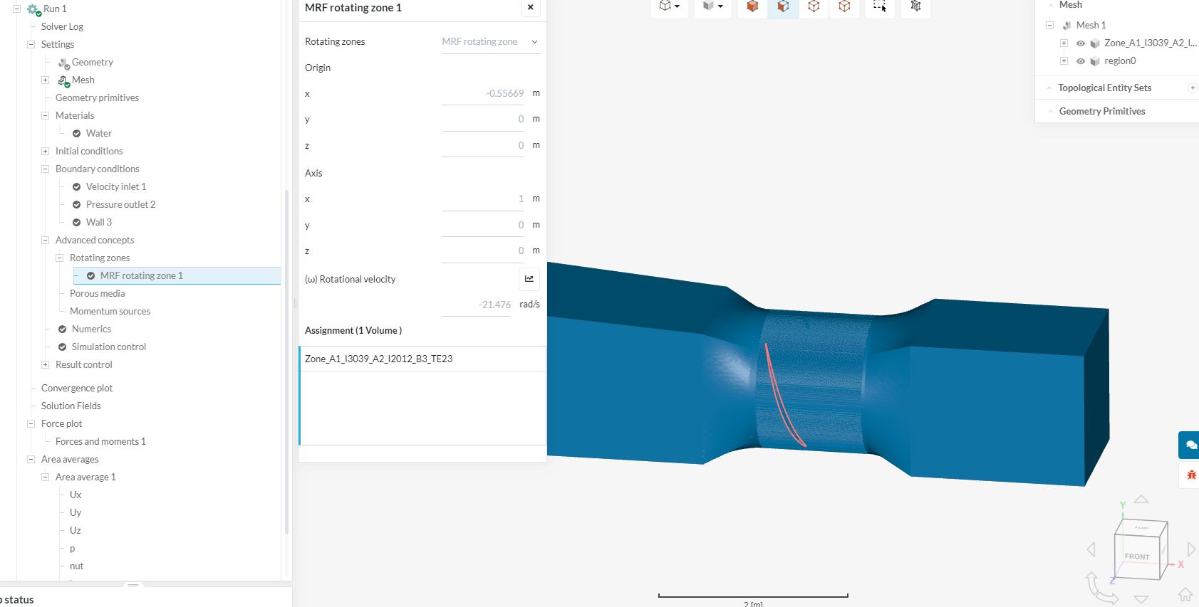 In Run 1 here are the MRF parameters (note the -ve rad/sec value) and the resulting head was +ve and about 10x the actual magnitude of the experimental results: