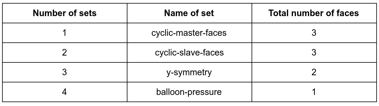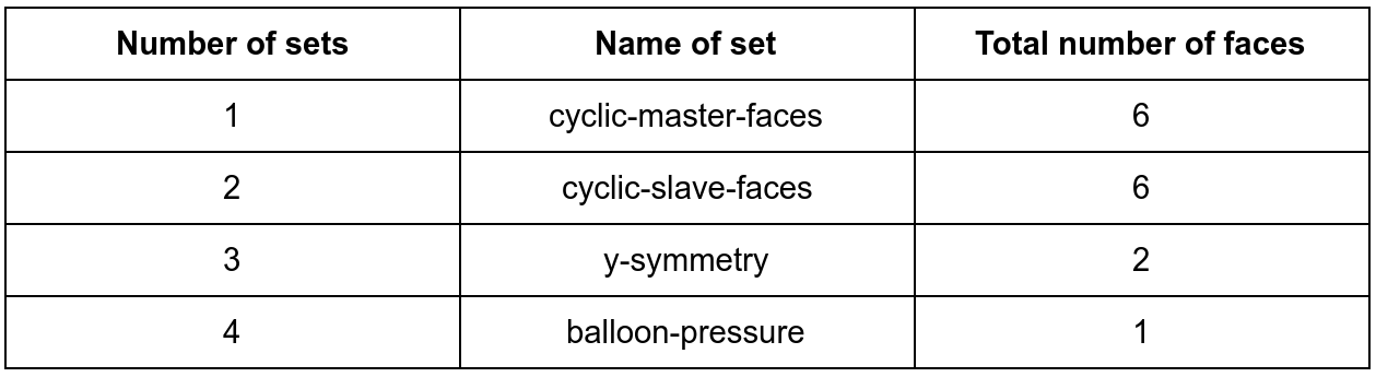 Once the topological entity sets definition is done, we will proceed to define the cyclic symmetry which we require since we have taken only a portion of our geometry. For more information on cyclic symmetry, please see the Cyclic symmetry documentation