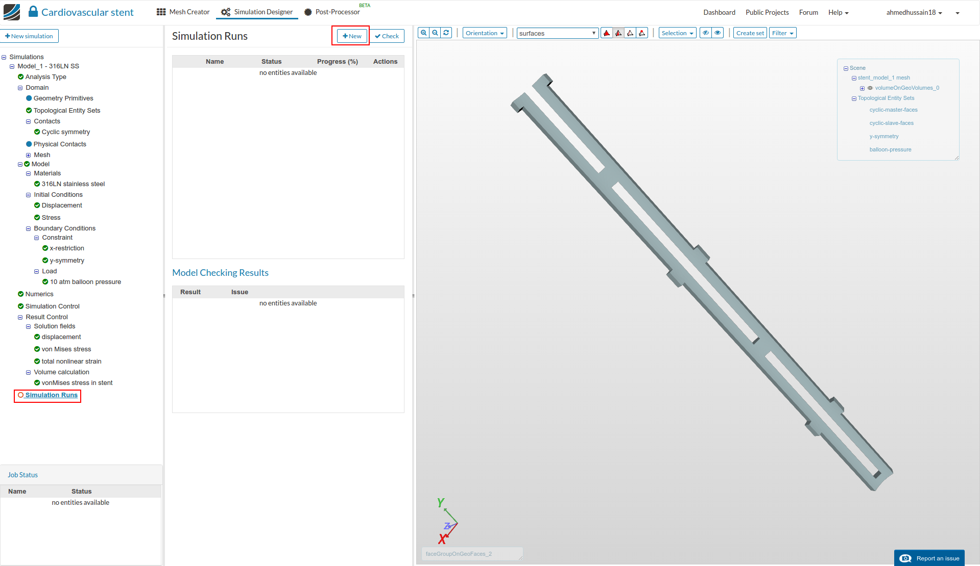 Next, to create a New Mesh for stent_model_2, click on the geometry stent_model_2