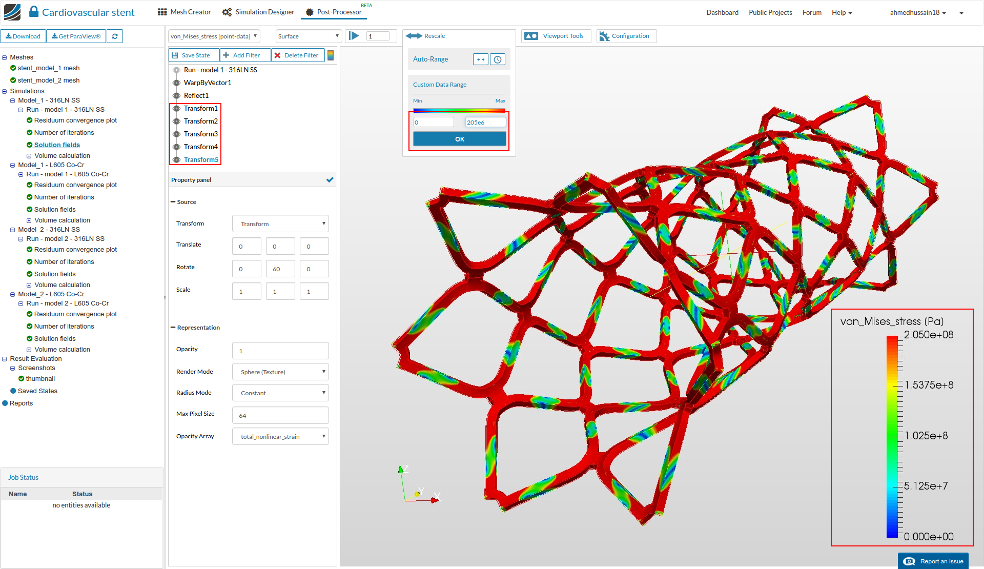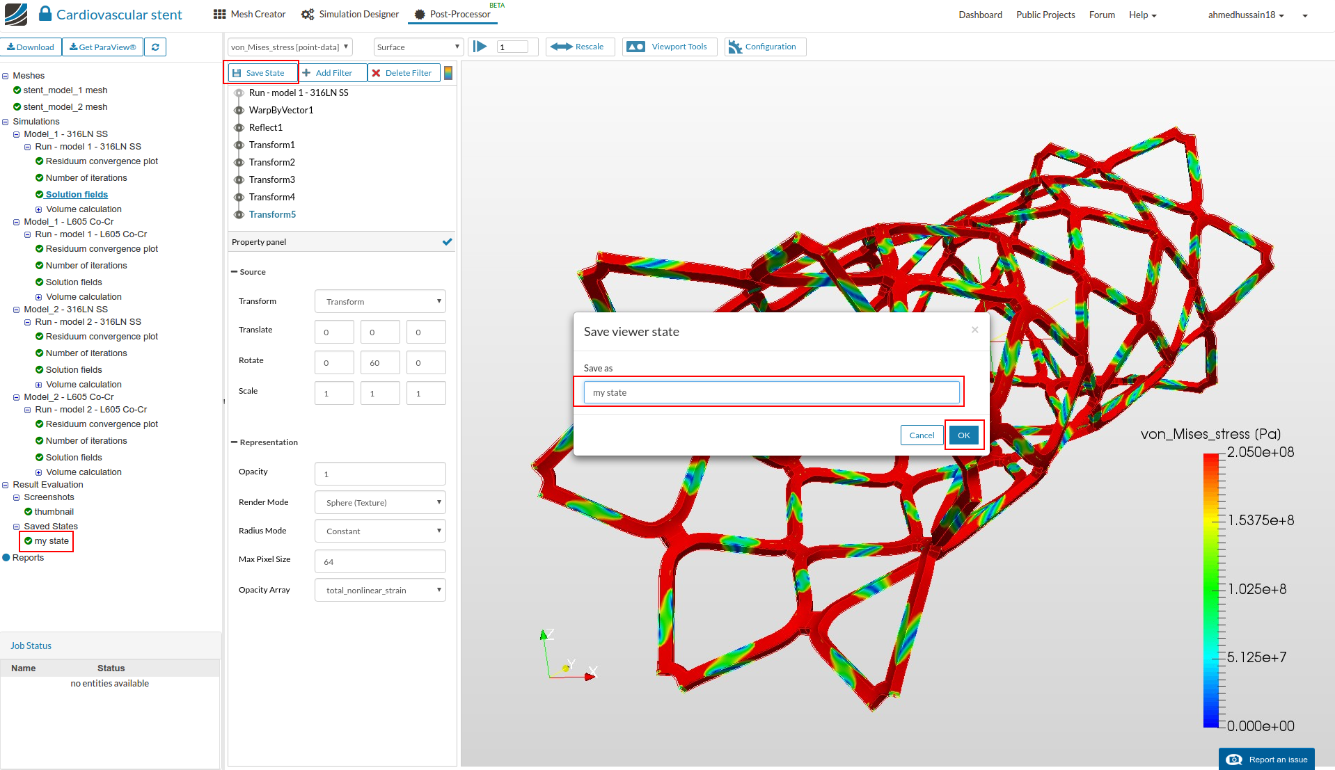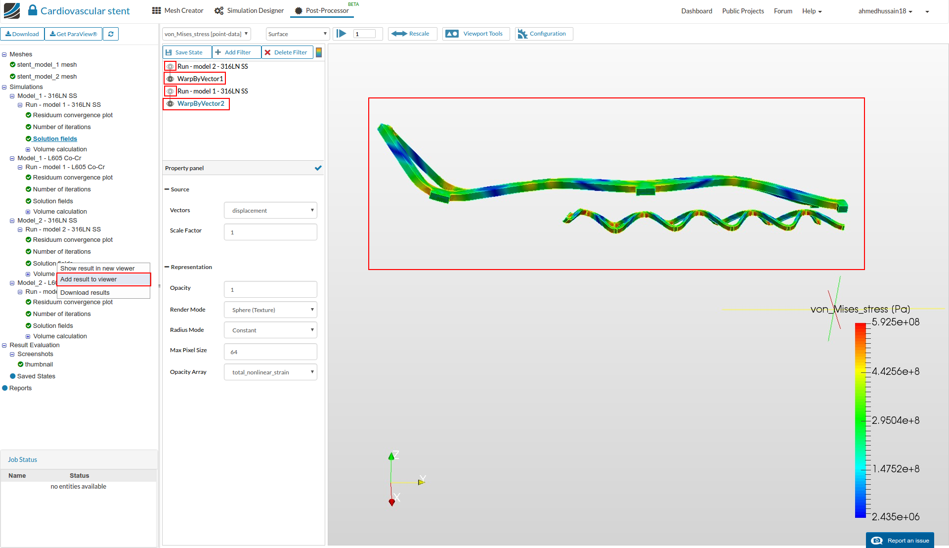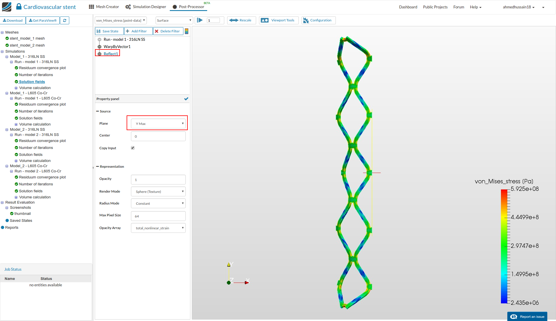 Now you have to change the Domain to stent_model_2 mesh and click Save. Click Yes on the warning message. Soon the viewer will be updated with the second mesh.