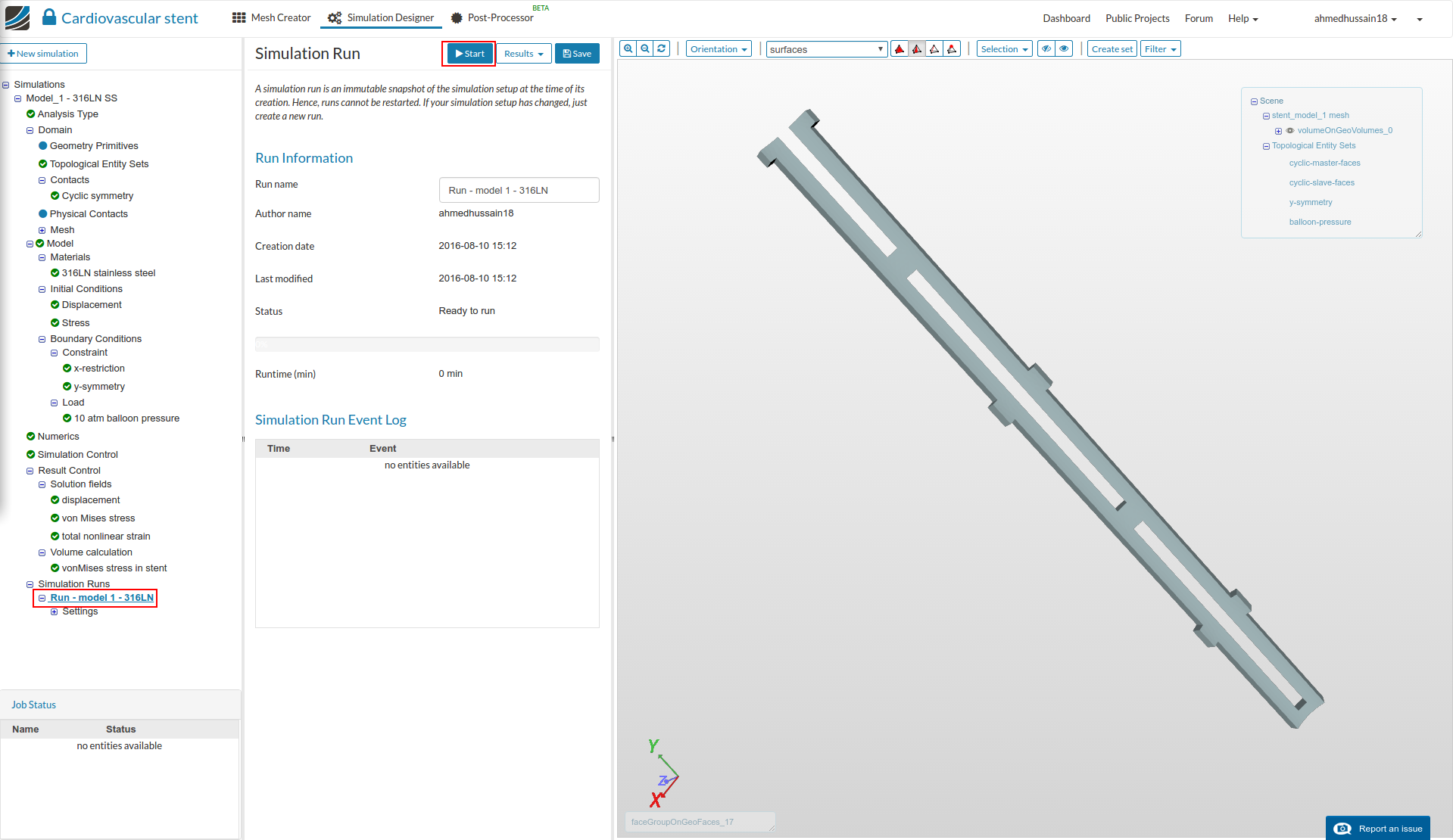 Finally create a new run and rename it to Run - model 2 - 316LN (optional) and click Start.