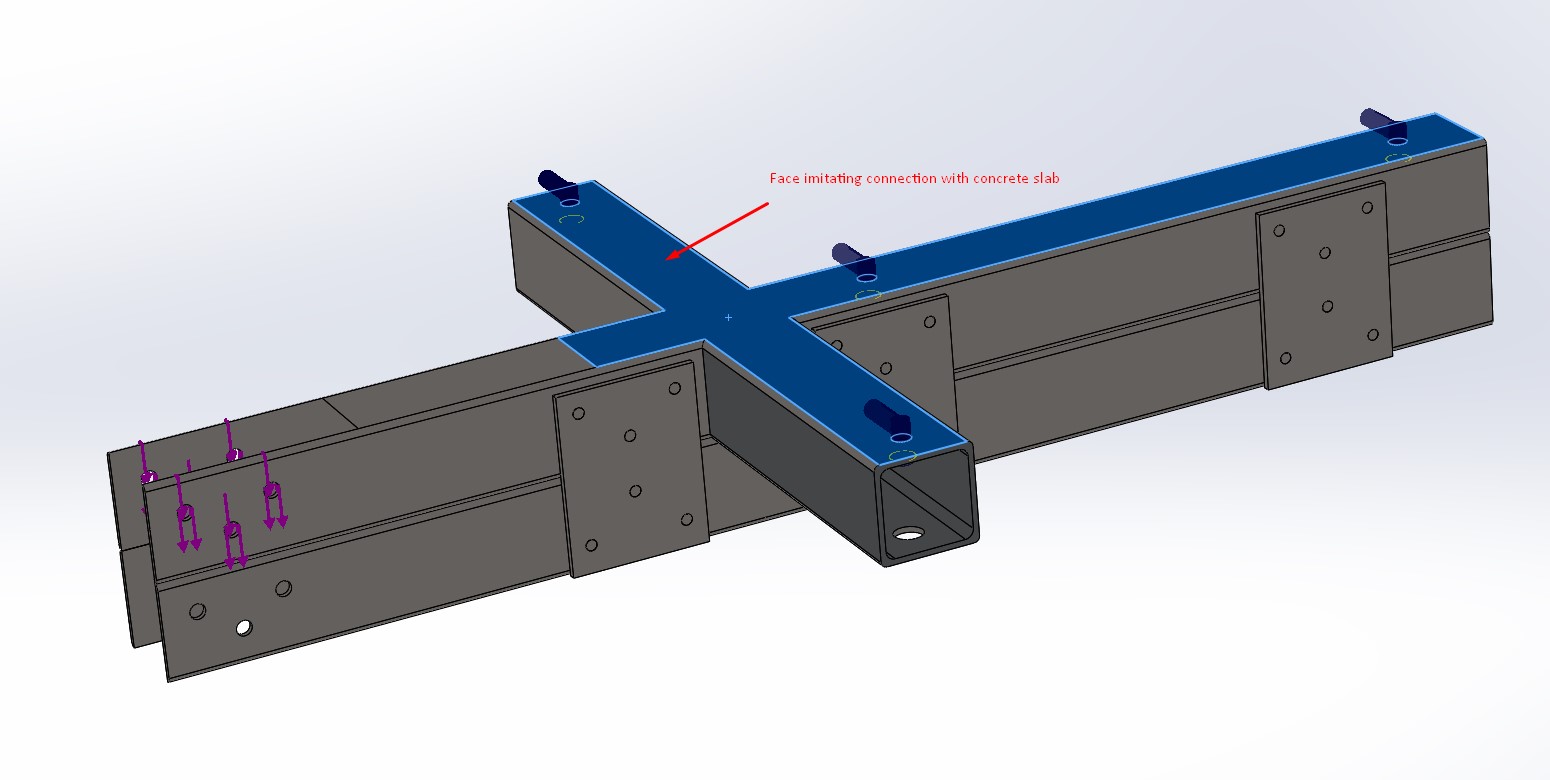 I am trying to simulate a two steel profiles, which are bolted together through steel plates.