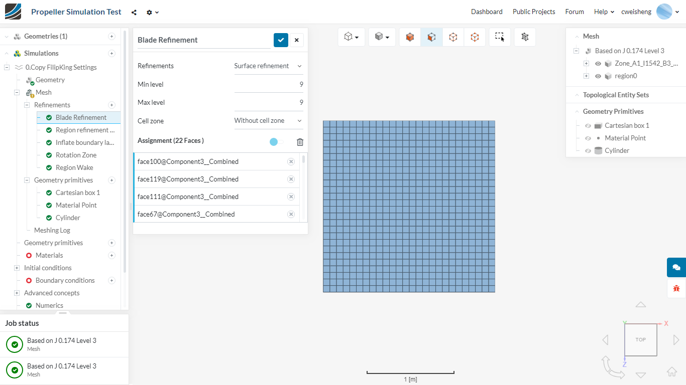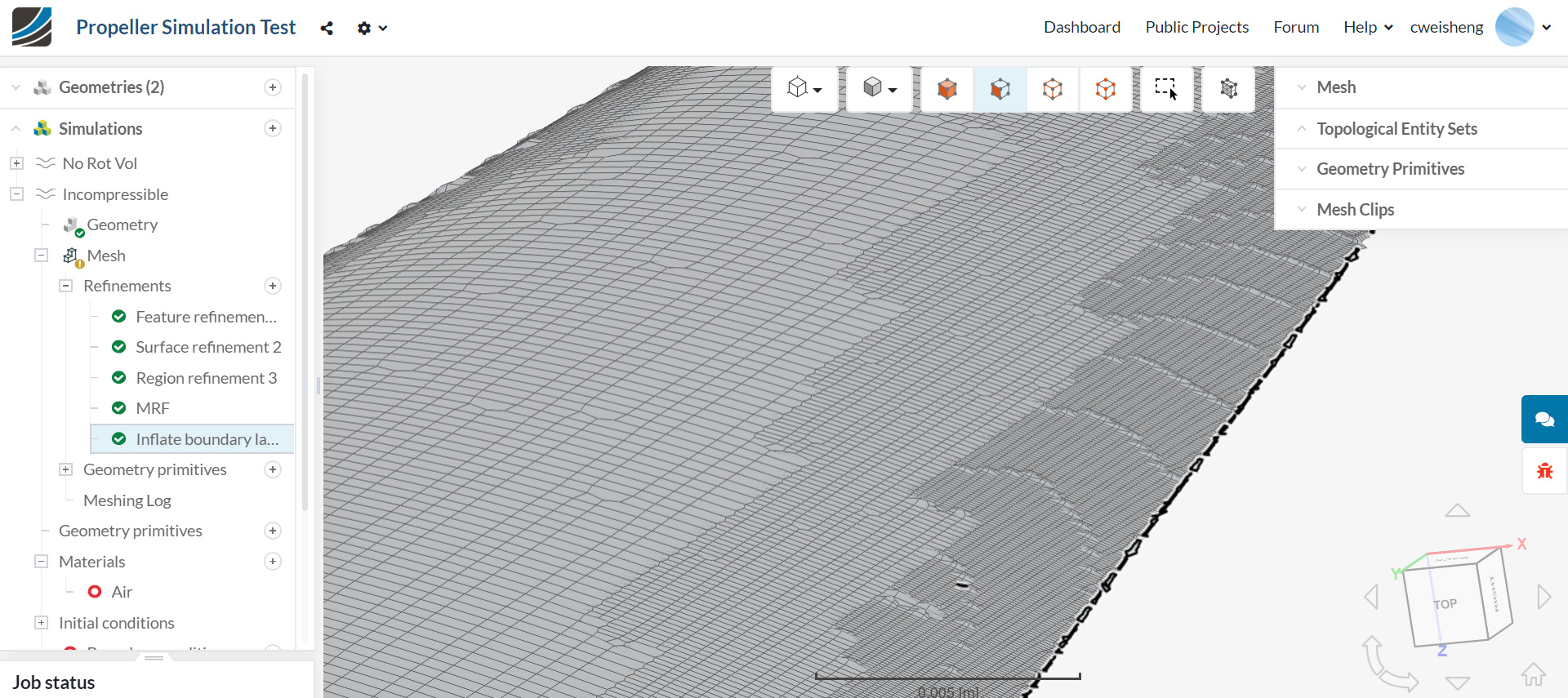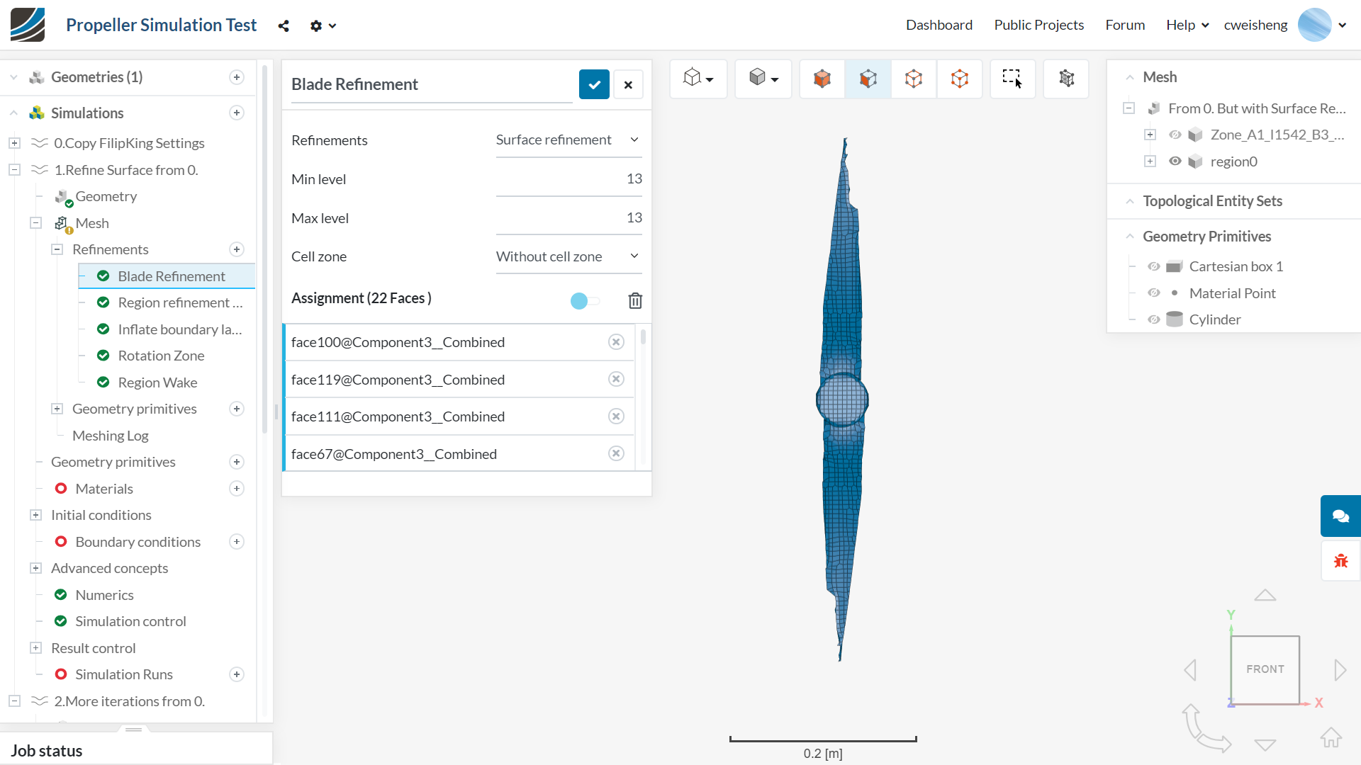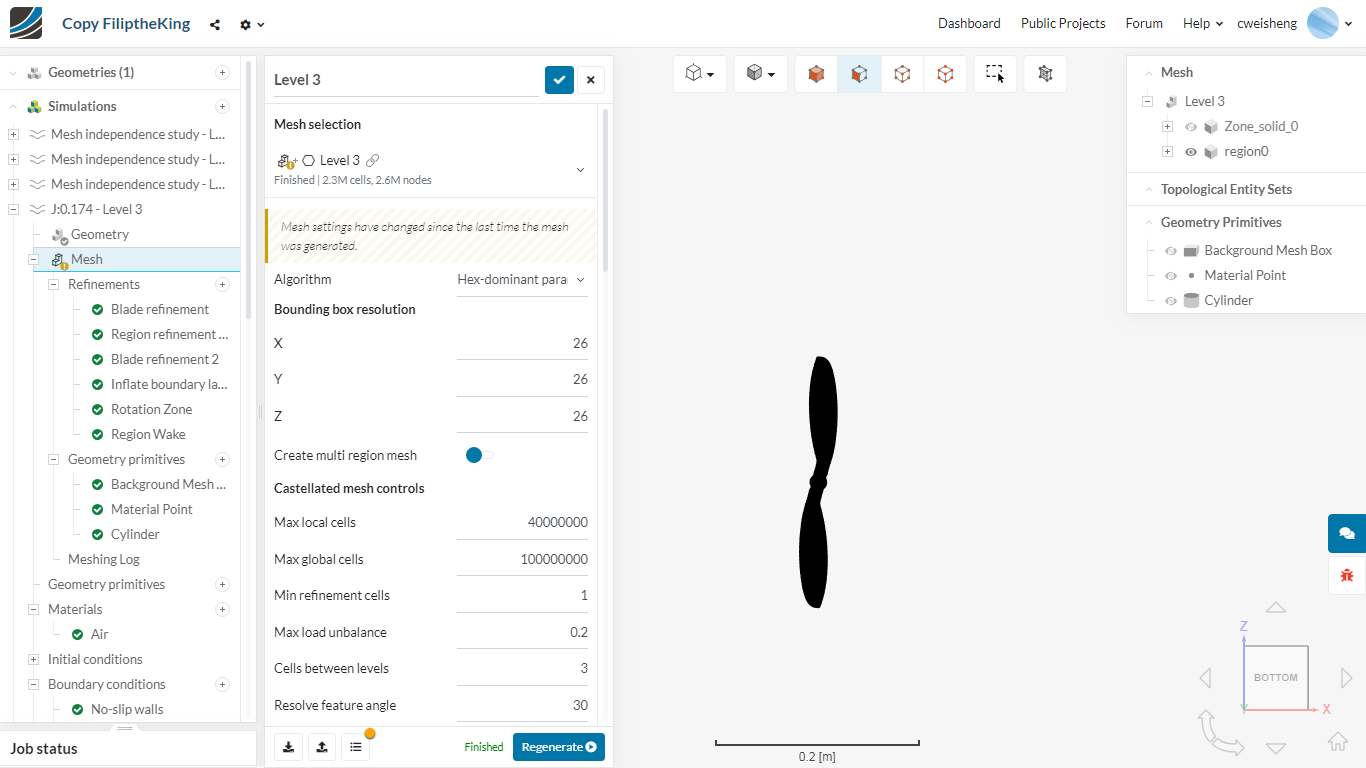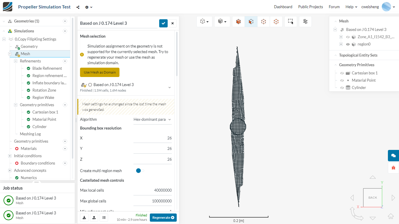 Similarly, your tip chord is only about 0.005m and you need the prop surface refinement to go from level 6 to 12 (or 13) to get some cells around the LE radius.