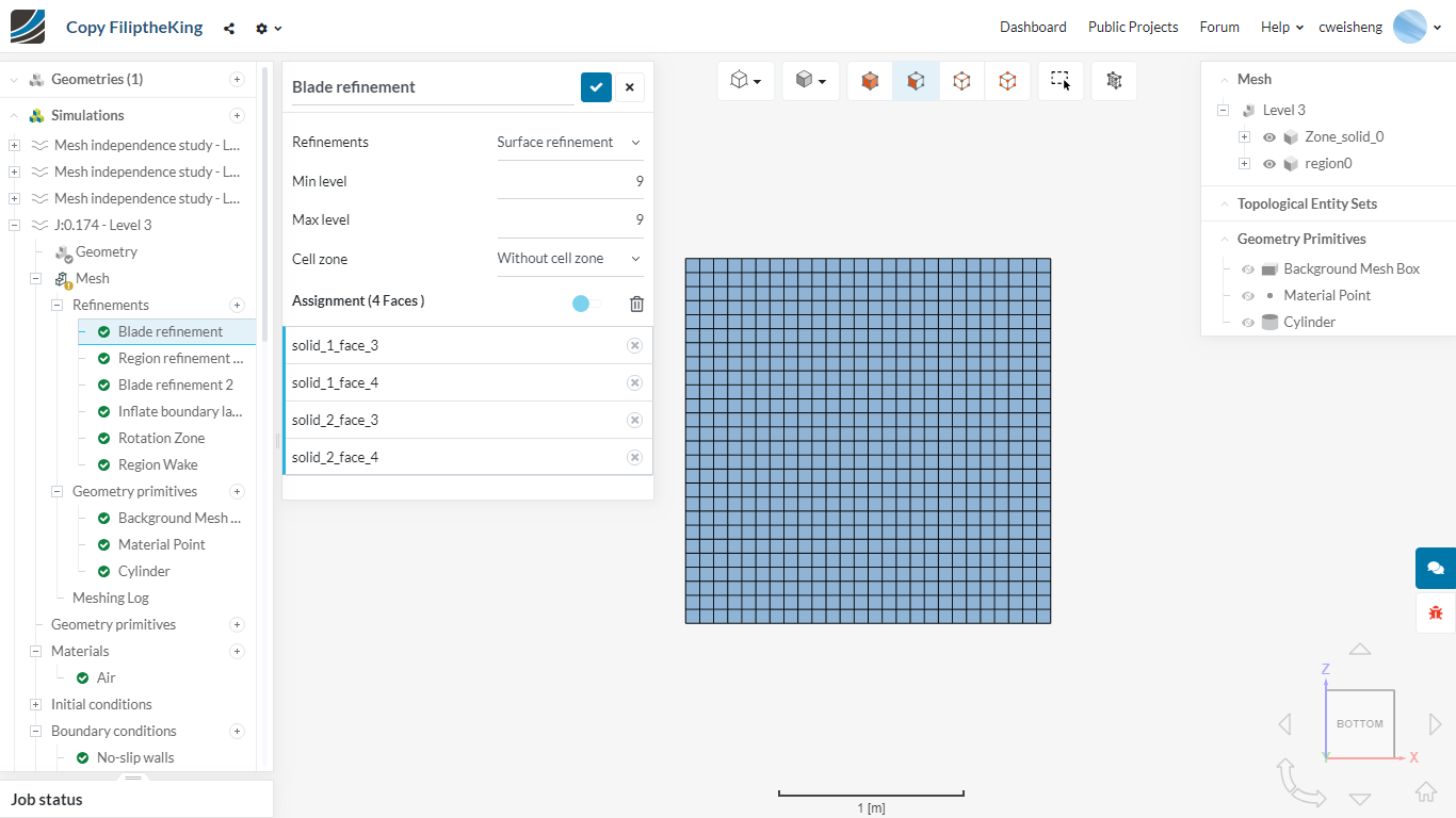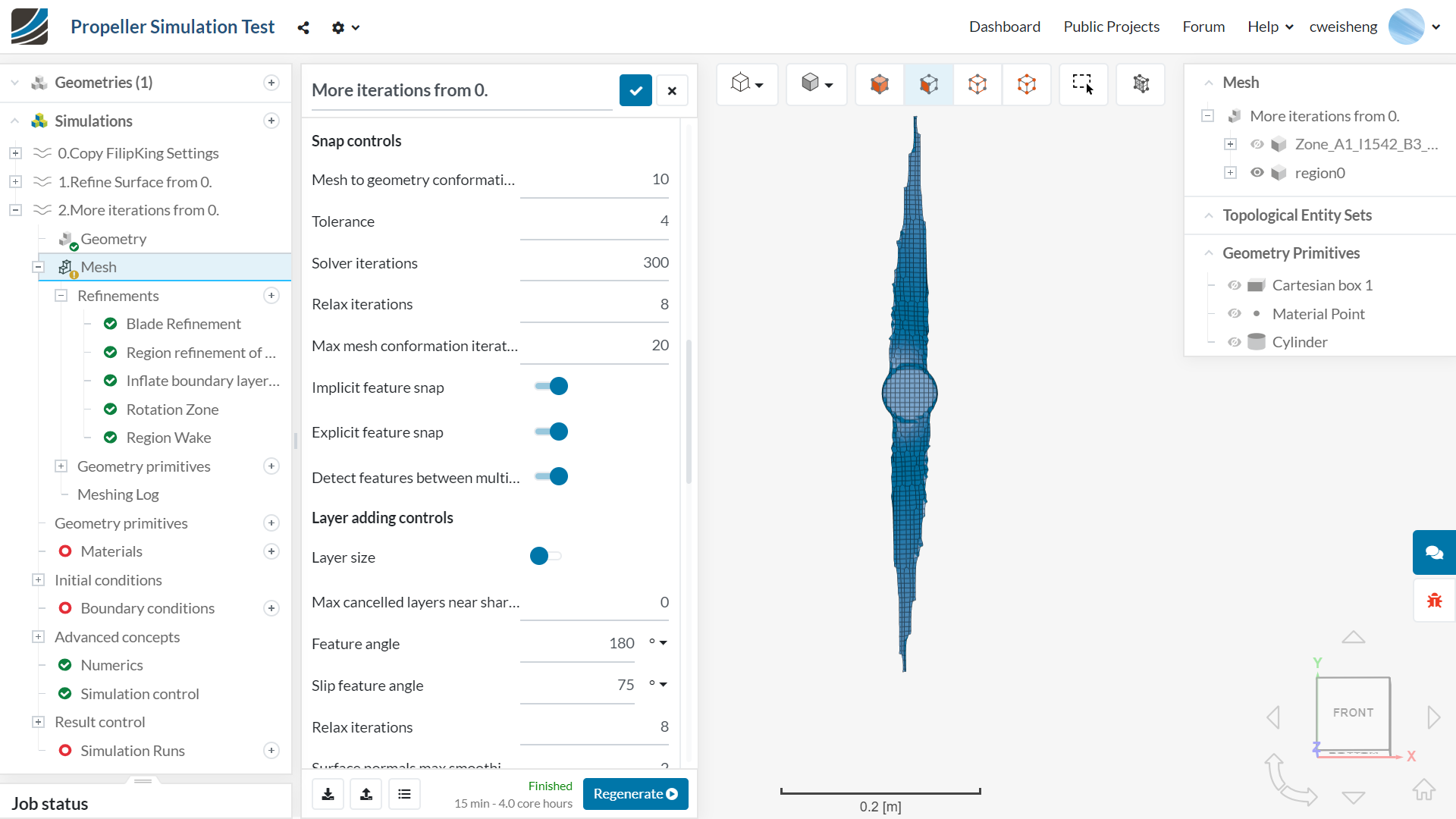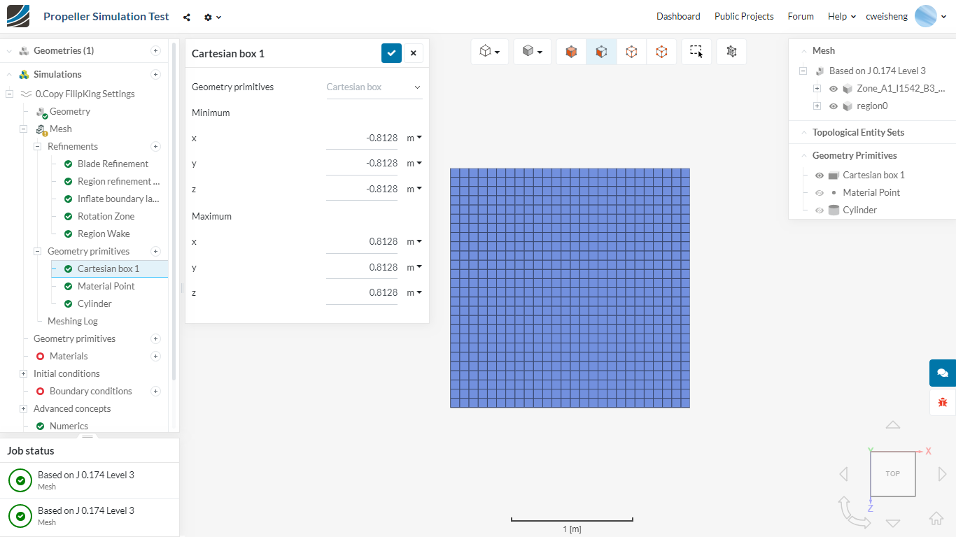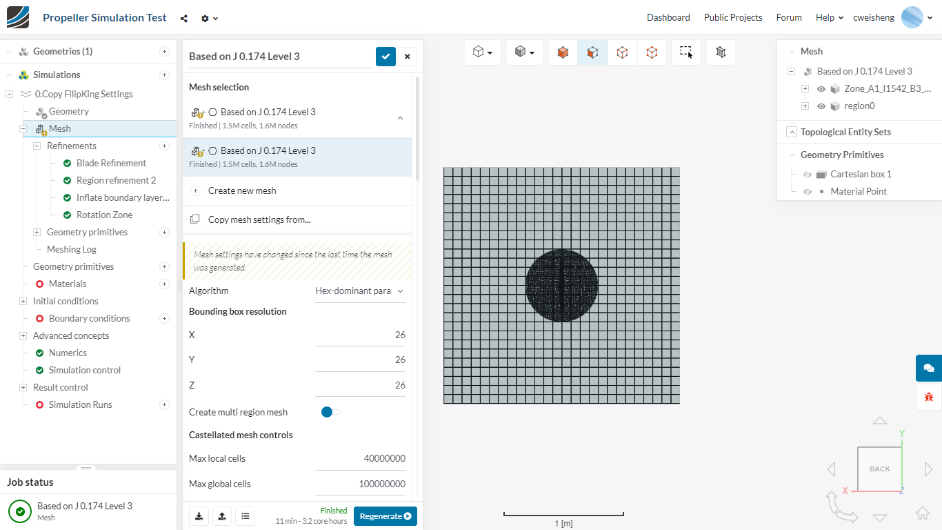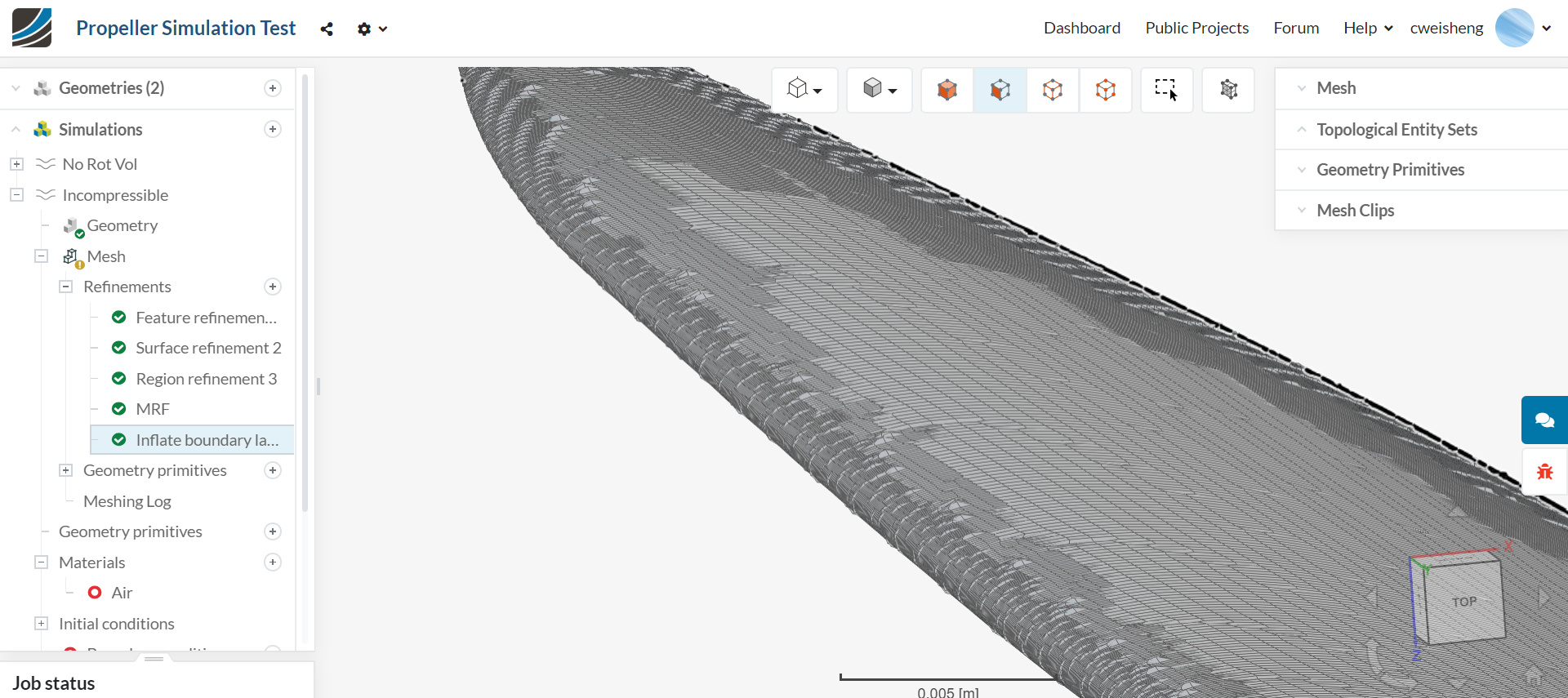 Similarly, your tip chord is only about 0.005m and you need the prop surface refinement to go from level 6 to 12 (or 13) to get some cells around the LE radius.