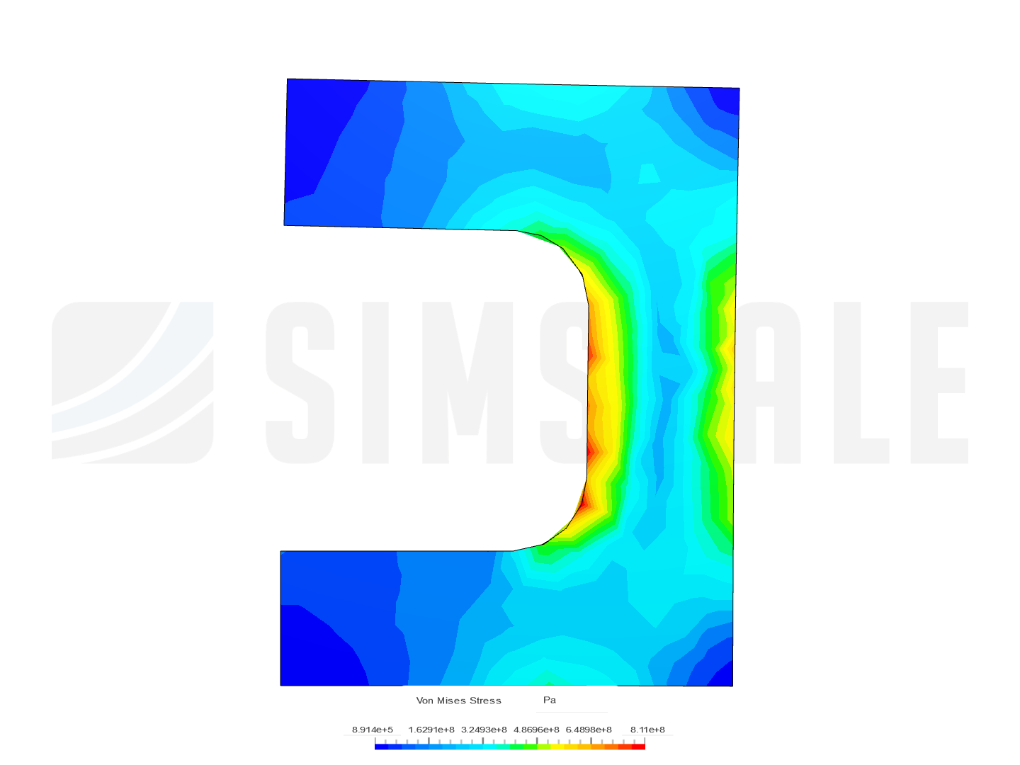 I need to design a frame for a rivet press. It will be a C shape and I want to determine how thick the material should be. Now I have run a simulation like in the screenshot. But I don’t feel good about this. In principle, one surface is now rigid and the other surface exerts a force of 50 tons. But in practice this is of course not really the case because that plane of the C shape is not rigid and the cylinder presses in 2 directions. Is it possible to assign a force to both planes and make the object rigid in a different way? Or how should I handle this. greetz