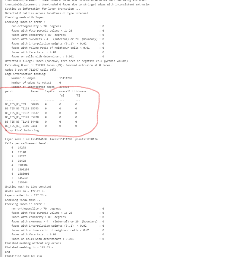 I was looking around in the forum and noticed that a prelimary check that can be done is to look at the moshing log, it states if the values in the table are 0 then the layers have not been applied, in my case the table values are zero, does this mean the inflation has not been applied