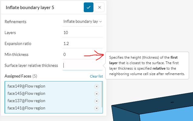 EX; if you have a 2mm local cell size and want a 1mm thick first boundary layer, you would put 0.5 for surface layer relative thickness. With a 1.2 expansion ratio, that would be 1mm + 1.2mm second layer, + 1.44mm third layer.