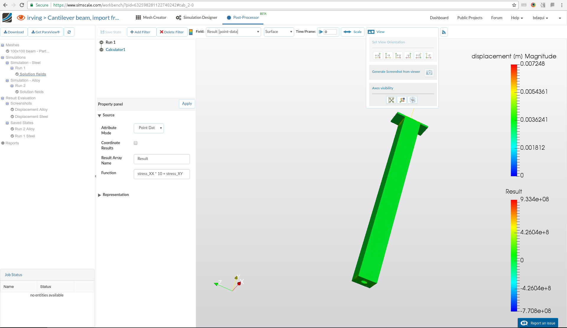 - The stress field is a tensor, and the ParaView calculator filter cannot be applied to it, which is analogous to what one expects from the desktop version of ParaView.