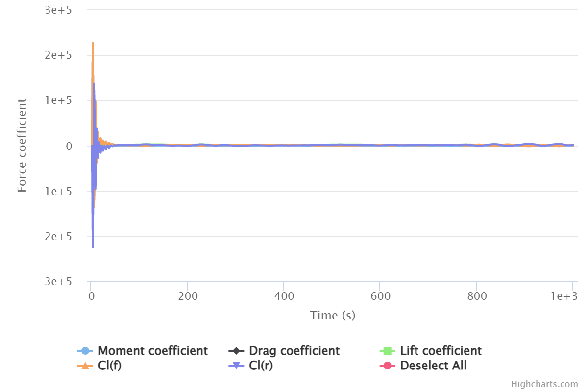 There seems to be a wrong setup of your coefficient report. Most important the reference velocity should be 44.4 m/s (100mph). Please have a look at this page on how to setup the coefficient reports.