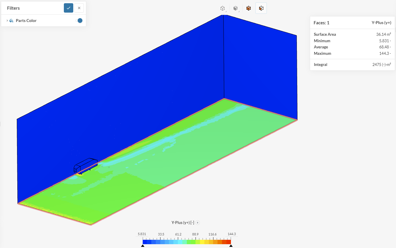 I do not understand why do I get such a bad range on the y+ on the floor as you mentioned, I chose a y+ of 150 and calculated the first mesh cell height for the floor… Also on the boundary conditions I chose wall function to model turbulence on the floor face. Should I have done something else?