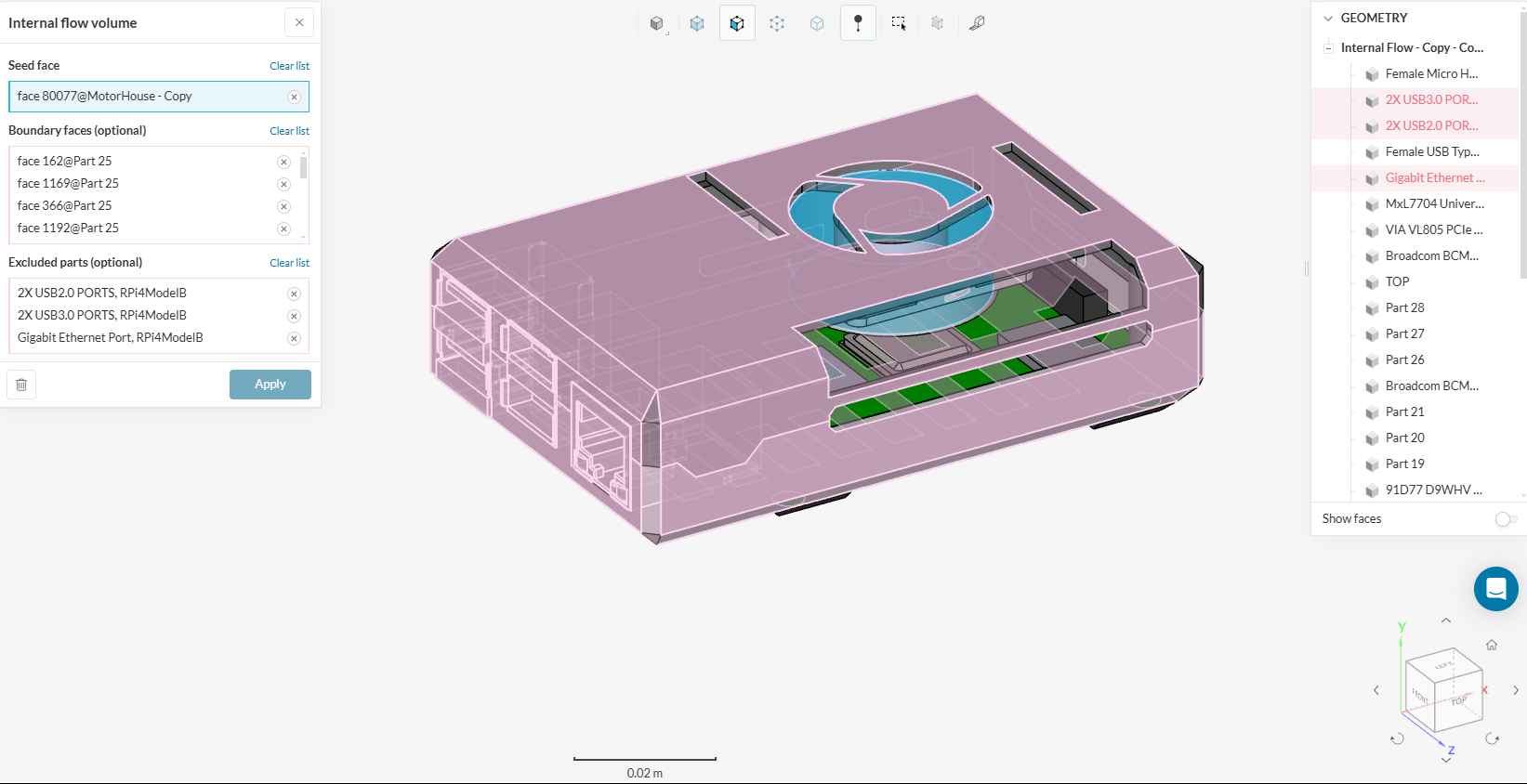 I had shared the simscale project with support, title as Raspberry pi fan cooling. The First geometry in the project is a sample. I am trying to acheive the same fluid volume in the second copy geometry. I have tried numerous time but couldnt.