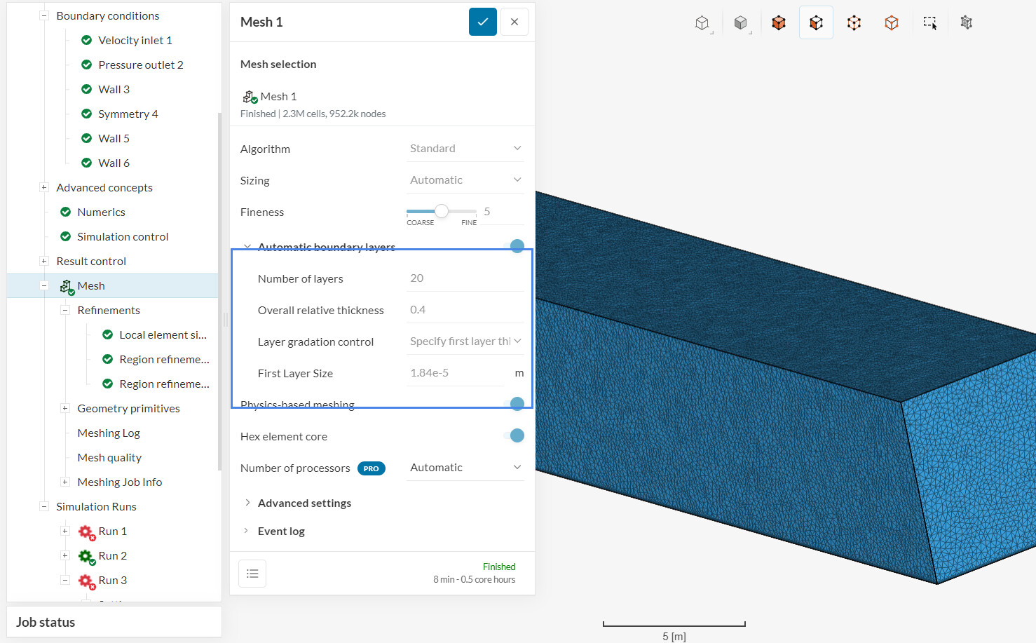 - Start with a y+ between 30 and 150 (wall-function) and verify the simulation runs well. You can even use it as initialization for your definitive case (I am not sure if SimScale has that capability already).