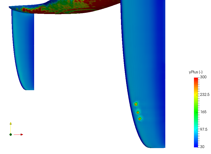 Quality : Decent, here is clip and yPlus map. The problem with this yPlus map is obviously on the Fuselage, that is why I am trying to layer with 1/2 fuselage length (2.5m) as the reference in Mesh 3 and Mesh 4 (those red values here go up to 1044!!!):