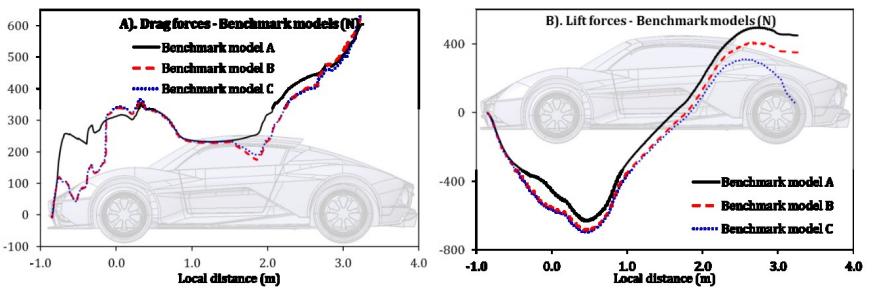 Hi, does anyone know how to create a plot such as the attached using Simscale CFD? I have been able to run and calculate the front and rear wheel loadings from the forces and moments, but a more detailed plot showing how the lift and drag varies along the length of the car would be amazing (like the attached image)! Thanks in advance!