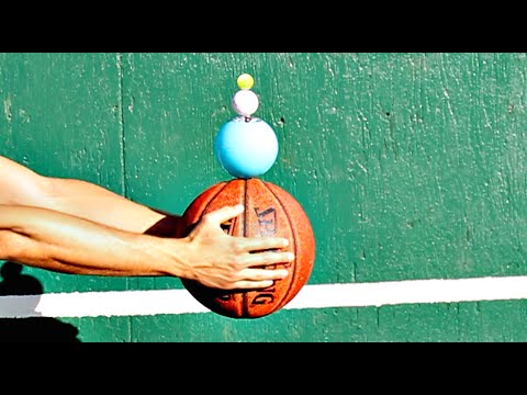 What happens when you drop a perfectly balanced set of balls? There’s a transfer of momentum causing the balls stacked on top to spring higher than their original drop height.