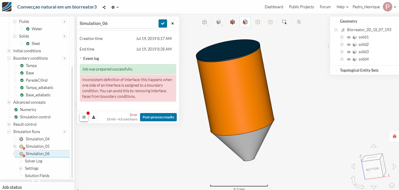 I’m trying to apply the Conjugate Heat Transfer Analysis analysis to a problem involving a water-containing bioreactor. I intend to understand how the heat distribution is given along it. I need to observe how natural convection currents behave near the wall and in general. The boundary conditions, initials and other settings are in my project titled “Natural Convection in a Bioreactor3”. [