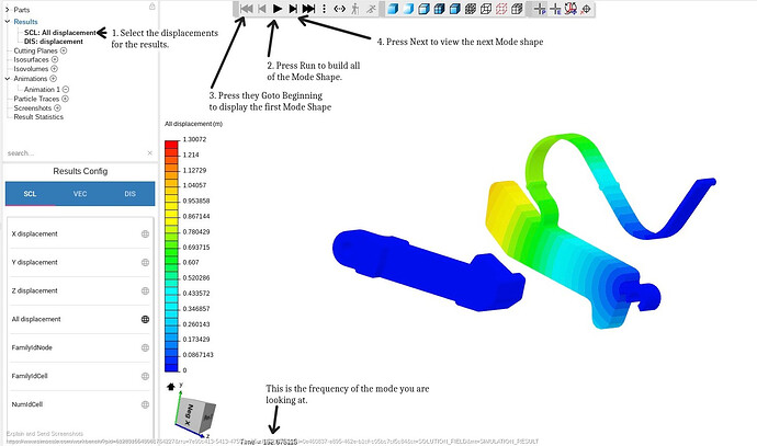 I have just had a look at the “Frequency Analysis of an Airfoil” example, after trying to simulate a cantilever beam to find its harmonic frequencies. So the setup seems fine, you choose the material properties and the fixed supports. There is no need to choose a force because natural frequency is not dependent on driving force. Now comes the results. It shows a displacement magnitude, (seems to be for a 4th harmonic), despite displacement being a function of force and not something universal. Furthermore, where are the harmonic frequencies? I thought that is what the simulation does, calculates the harmonics.