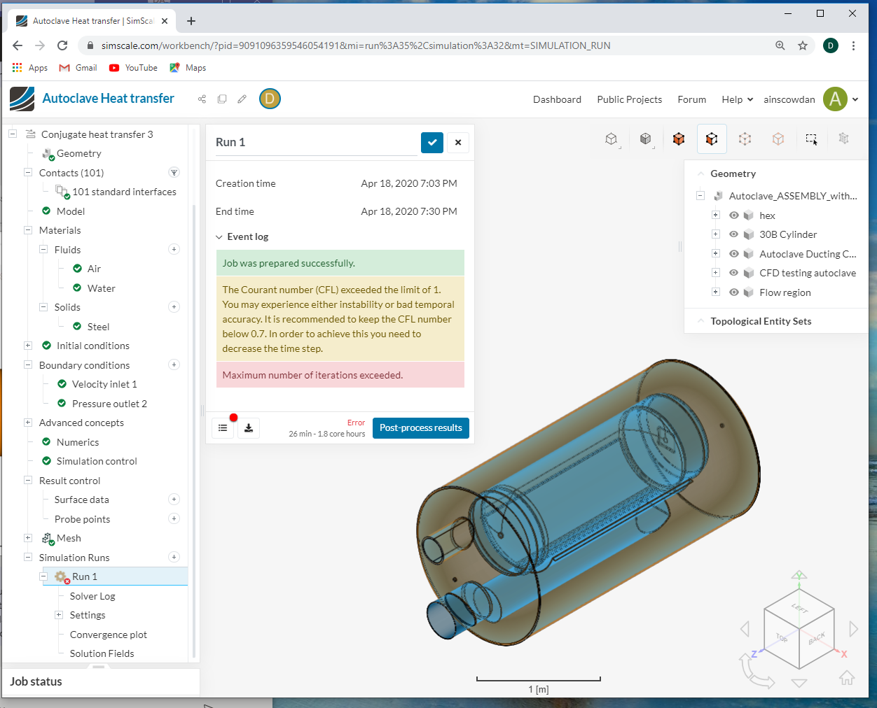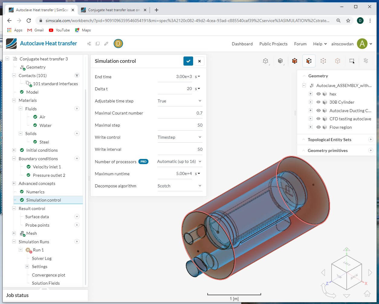 @Ricardopg This is helpful because am also working on this project with @ainscowdan as we are both newbies here on #Simscale. We will give your suggestion a try using the Boolean or Combine operator on the Autoclave design. So this should potentially work on the model using the CHT or heat transfer models. Hopefully Onshape CAD tool online should be able to do the trick. The use of the cutting plane on the geometry is also descriptively helpful. Thank you, we will give it a try.