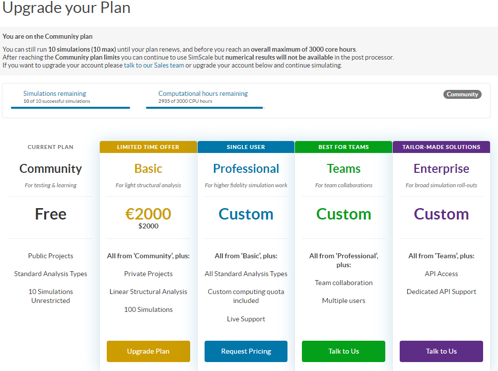,An initial free ‘Community’ license for simulating ‘wind’ is available which allows you to simulate forces on structures, rotating fans etc. 3,000 free core computing hours and 10 successful simulations. There are some recent examples of air/wind flows around (external flows) around buildings in Public Projects.