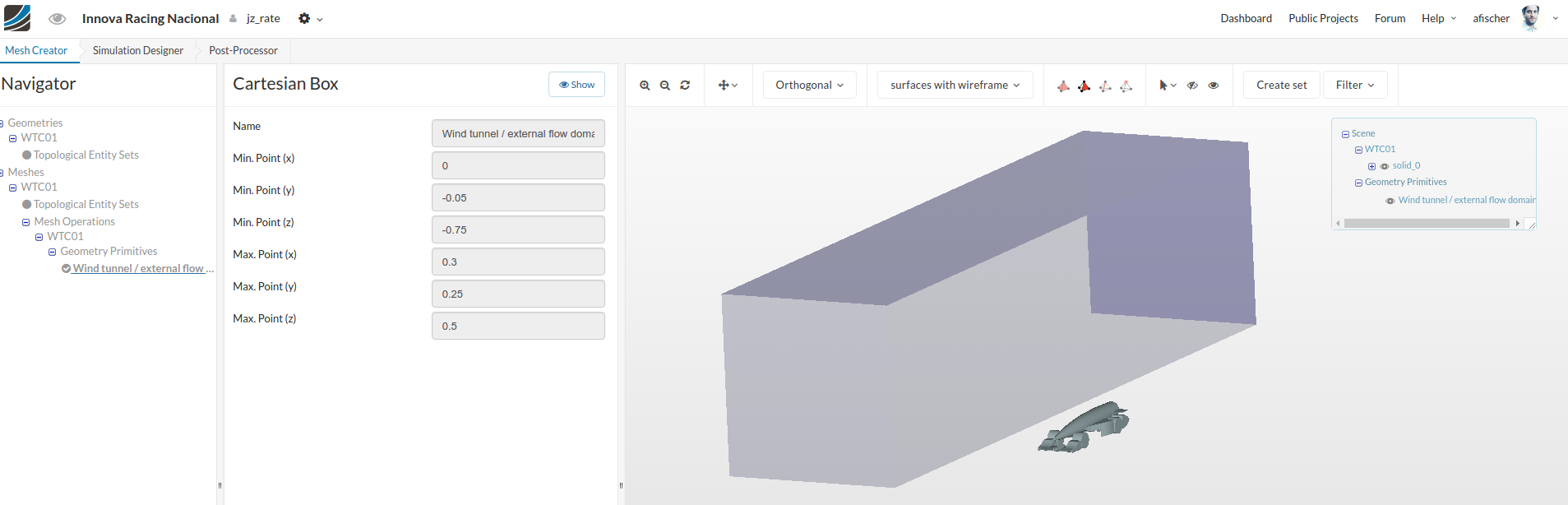 your base mesh box that defines the flow domain around your geometry for an external aerodynamics mesh does not contain the geometry. See the image below. You need to adjust the coordinates of the minimum and maximum point of the box to fit to your model, then you are fine with your setup!