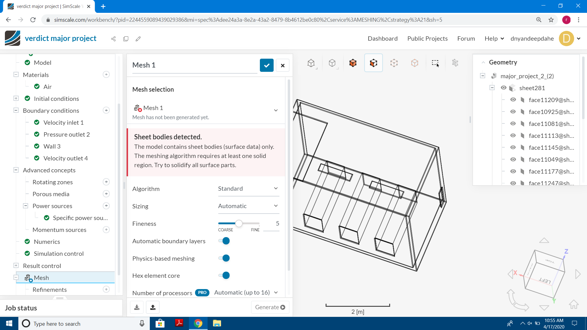 Link to Project- https://www.simscale.com/workbench/?pid=2244559089439029386&mi=spec%3Adee24a3a-8e2a-43a2-8479-8b4612be0c80%2Cservice%3AMESHING%2Cstrategy%3A21&sh=5