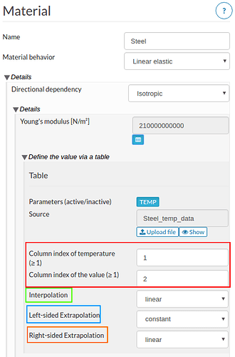 Highlighted in red are the columns for temperature and material values. This is set to 1 and 2 respectively since our file contain temperature and Young’s modulus values in first and second column respectively.