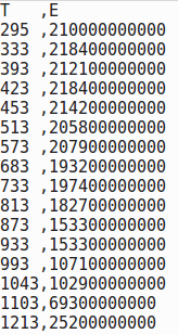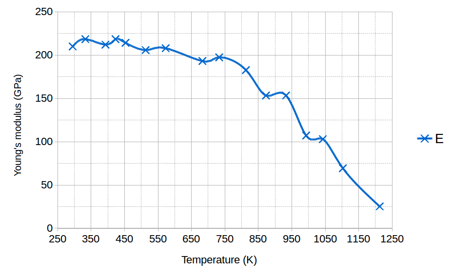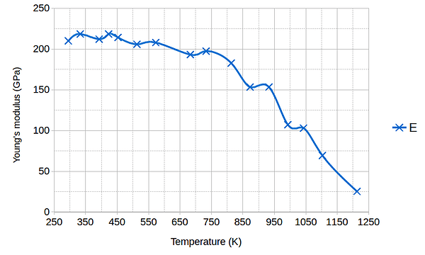 Using your material data, make a a .csv file. The graph below shows an example of temperature change of Steel Young’s modulus.
