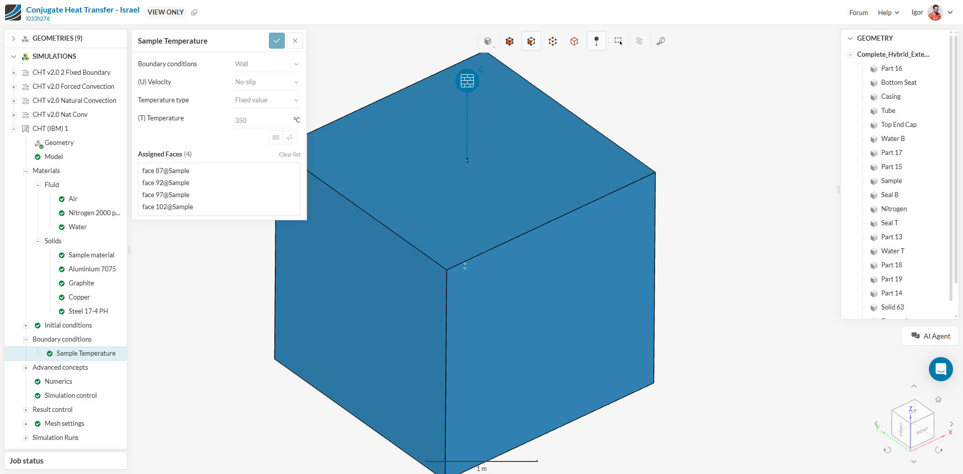 I am a graduate student and I am new to SimScale. I am trying to simulate conjugate heat transfer on a machine that contains a core sample that heats up to 350 degrees celcius and the objective is to identify the temperature at other elements sorounding the core sample to see if they can withstand the temperature and how efficient natural convection could be . The problem I am having is that the solution diverges possibly caused by bad elements in the mesh. I have followed the procedure on a tutorial video provided by SimScale “Conjugate Heat Transfer Simulation of an LED Spotlight” and I asked SimScale AI agent help several time which led me to modify the fineness, small feature suppression and the relaxation factor. I simplified the geometry and I have also checked the Mesh quality metrics and they are inside the acceptable range; but the solutions keeps diverging. The URL of the project is: Conjugate Heat Transfer - Israel | SimScale Workbench Thank you in advance for your response and help.