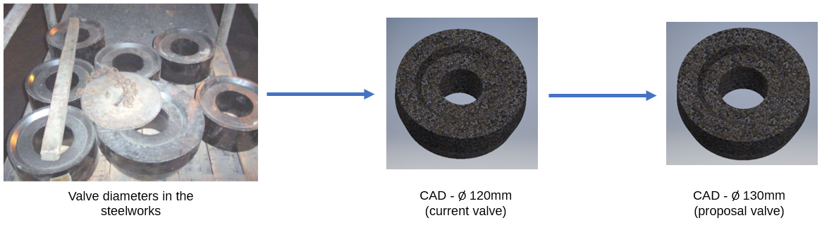 Aiming to reduce the consumption of graphite electrodes during secondary refining, the step was to optimize the time of electric arc furnace leakage by increasing the size of the refractory glove, thus making the steel filled pan arrive more “early” and with greater temperature in LF, which would decrease tap-to-tap time and thus reduce graphite electrode consumption. For this, four different valve opening diameter values will be considered: 120mm, 130mm, 166mm and 176mm, all subjected to the same contour conditions to obtain the time of arrival of the molten steel to the “liquid foot”, which represents approximately 8 tons of steel that is in the deepest region of the EAF.