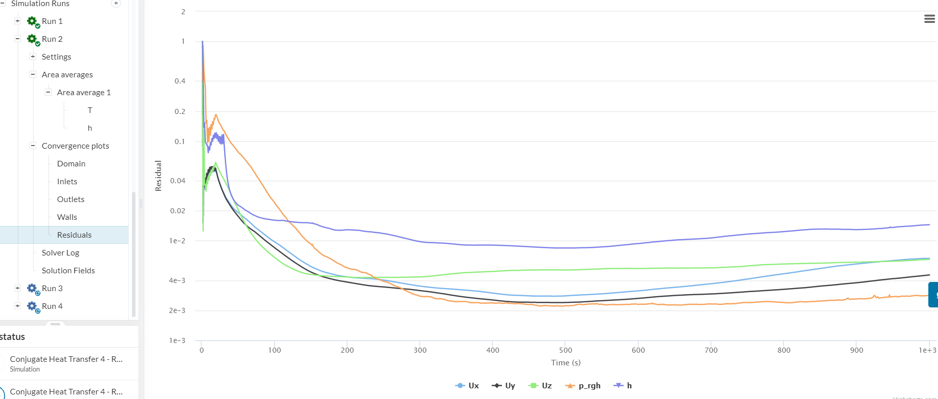 *In the part Results, how to interpret the convergence plot Residuals, area average