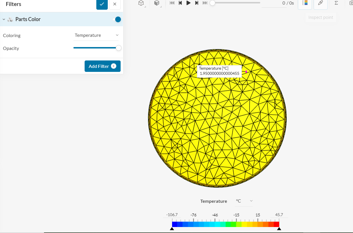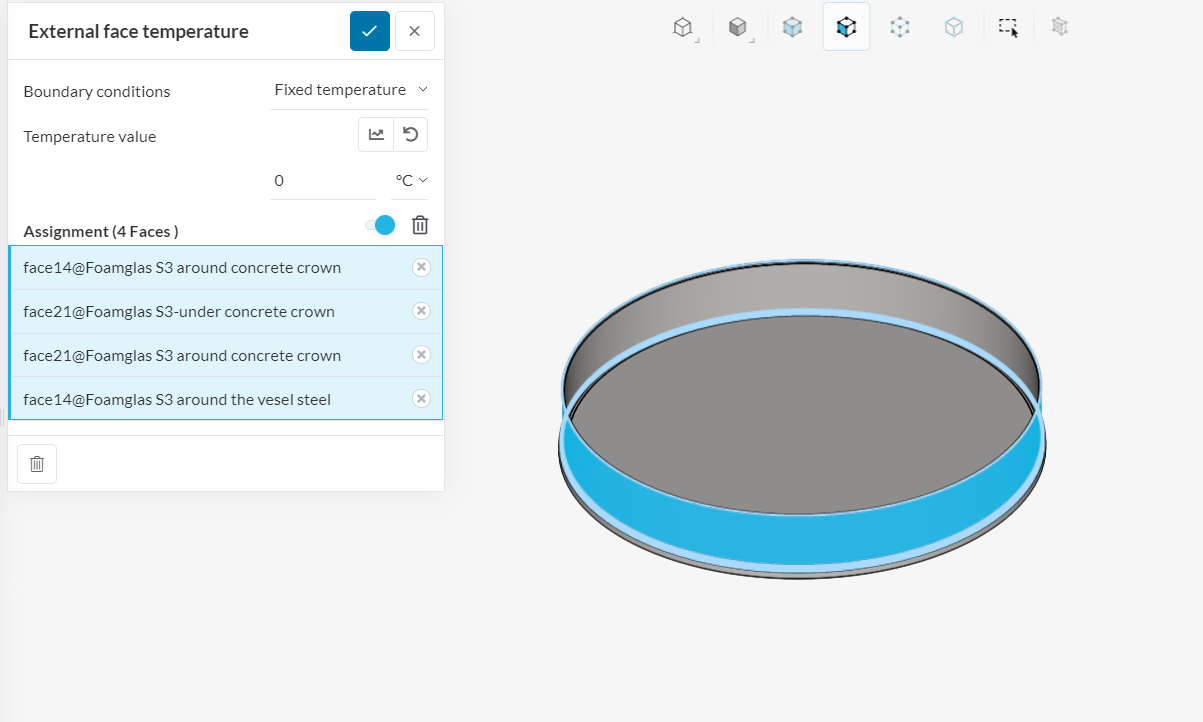 I intended to have a positive temperature in the internal face of the concrete crown, but I have around -14°C.