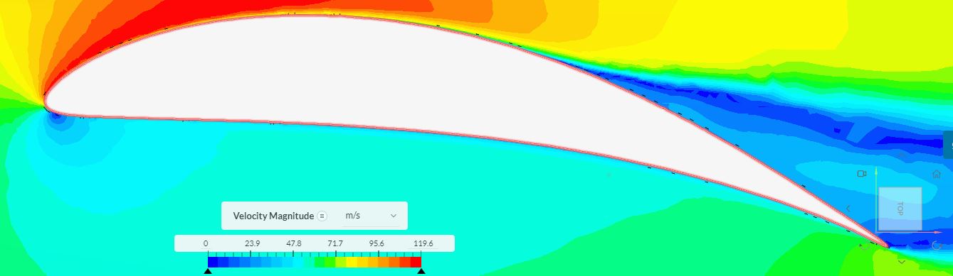 Imported Airfoil co-ordinate points from Airfoil tools to a csv file, then I created an excel airfoil graph of the nominal 80 points and inserted approx 80 intermediate points and ensured the shape was smooth via the excel graph. This doubled the points of the original csv file. I then imported the airfoil csv file into Fusion 360 via the Add-in spline tool for sketching the 2D airfoil shape. I then used the airfoil spline shape as a template to create Fusion points over the top of the imported csv points. I then drew lines between the points to create my own sketch shape. Then extruded the 2D airfoil to a 3D shape in Fusion 360 & imported into Simscale and created a mesh. Result was worse. I’ll need to investigated a better way to draw smooth foil shapes in Fusion 360, maybe Onshape can do this better?