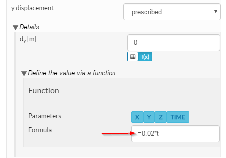Hi @baudencm, I think your simulation fails to start because you have an equal sign at the beginning of your applied displacement function.