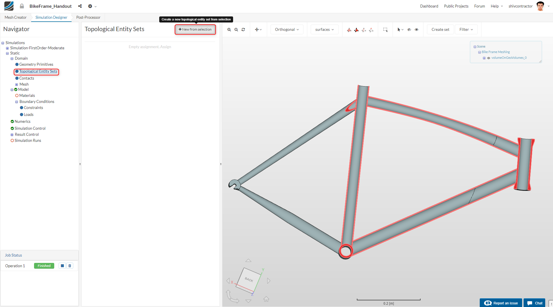 On the ongoing task bar, you can see that we have successfully assigned the Topological Entity Sets. We will use these TES to assign Boundary Conditions later in this tutorial.