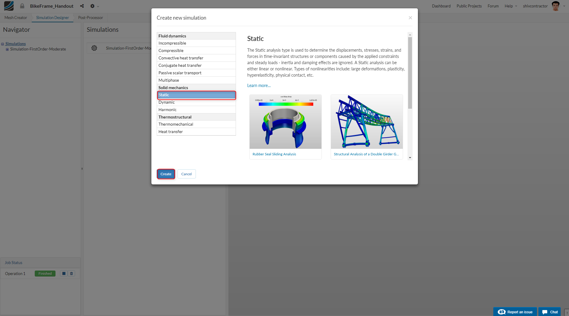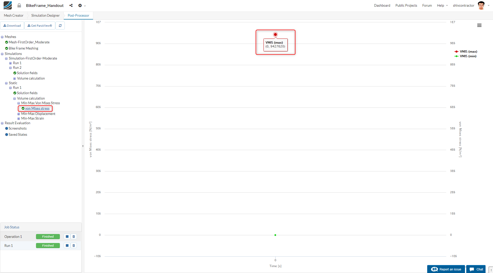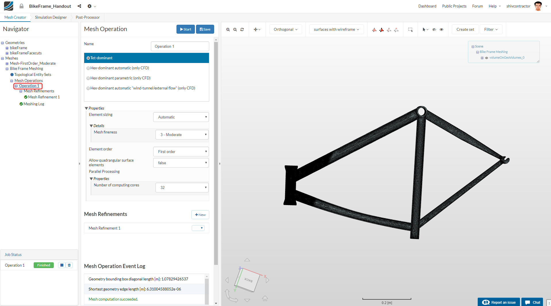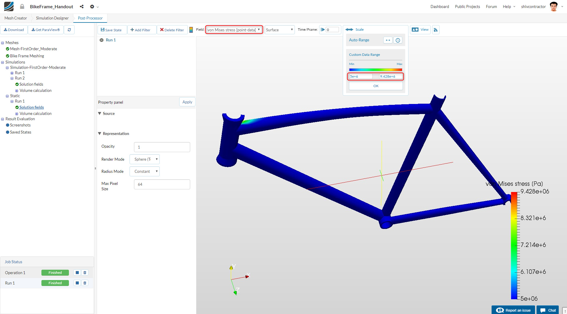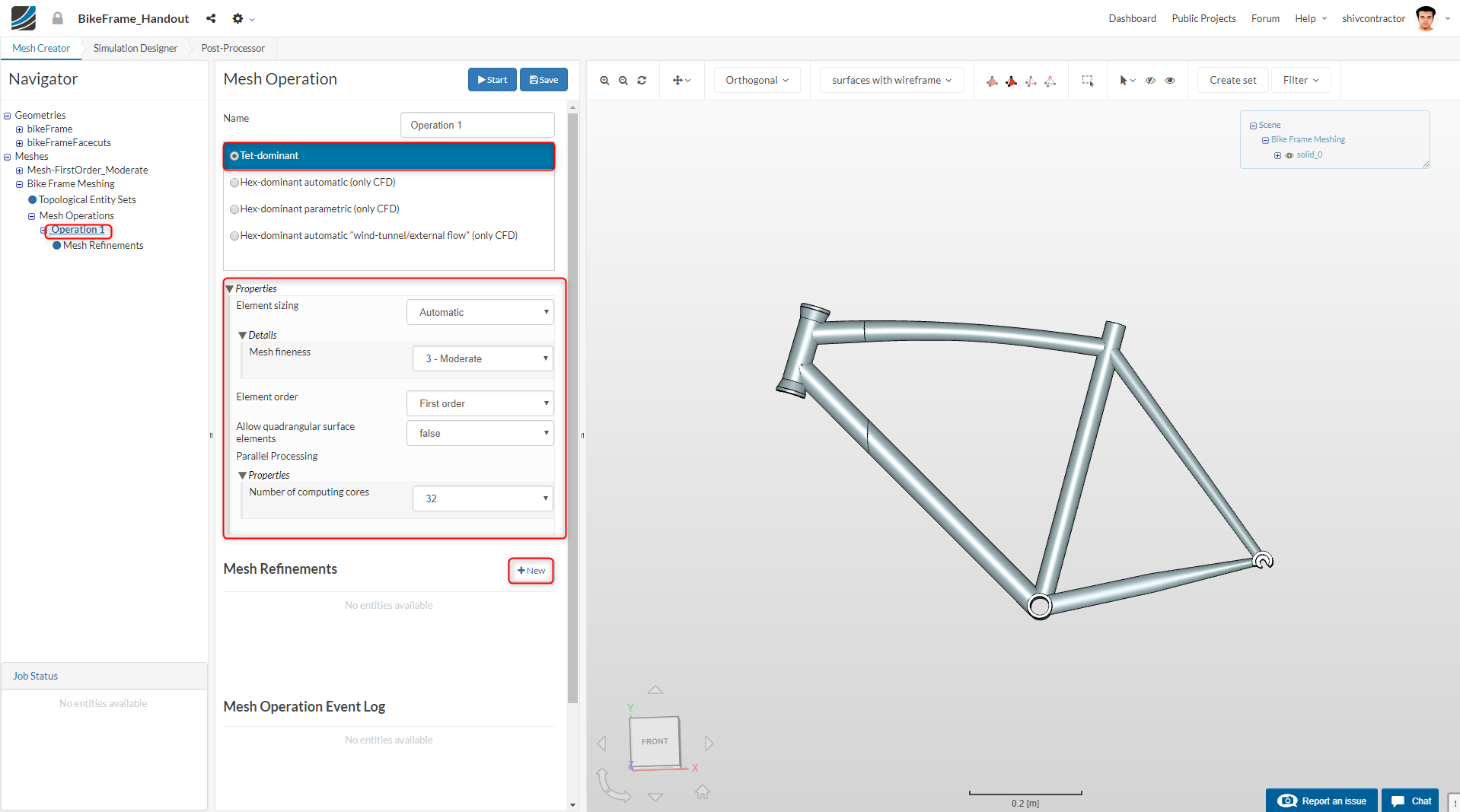 In this exercise, your task is to utilize the SimScale Platform to setup a local mesh refinement and simulate the resultant stresses on the frame of a bike when a person is standing on its pedals. One of the primary factors in determining the design of the bike frame is to have a factor of safety which is at least two times the maximum stress that the bike would undergo at any point in operation.