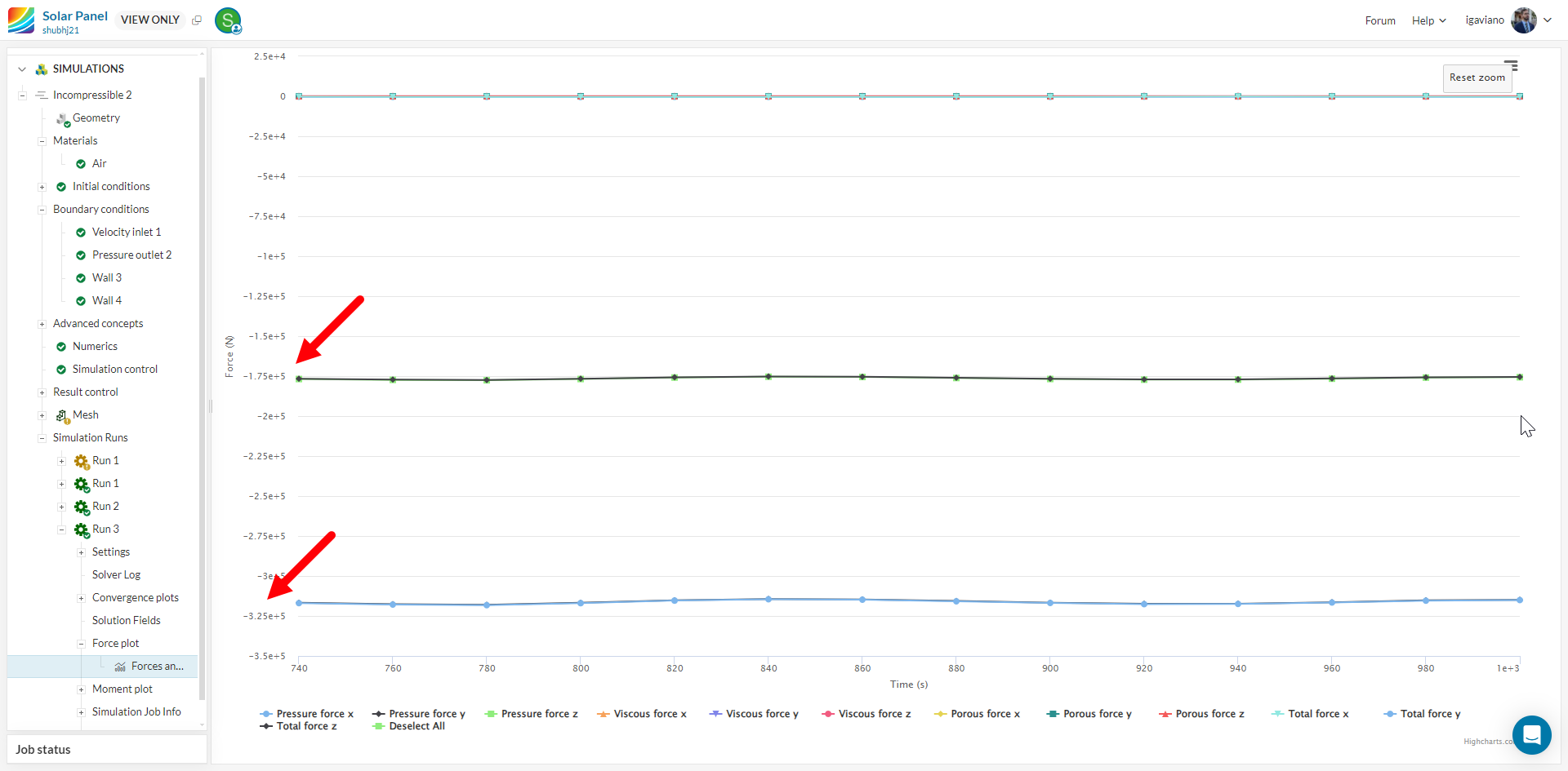 I was doing a CFD analysis of a solar panel assembly. I am using incompressible flow simulation. But somehow my forces and moments on the assembly are converging to zero.
