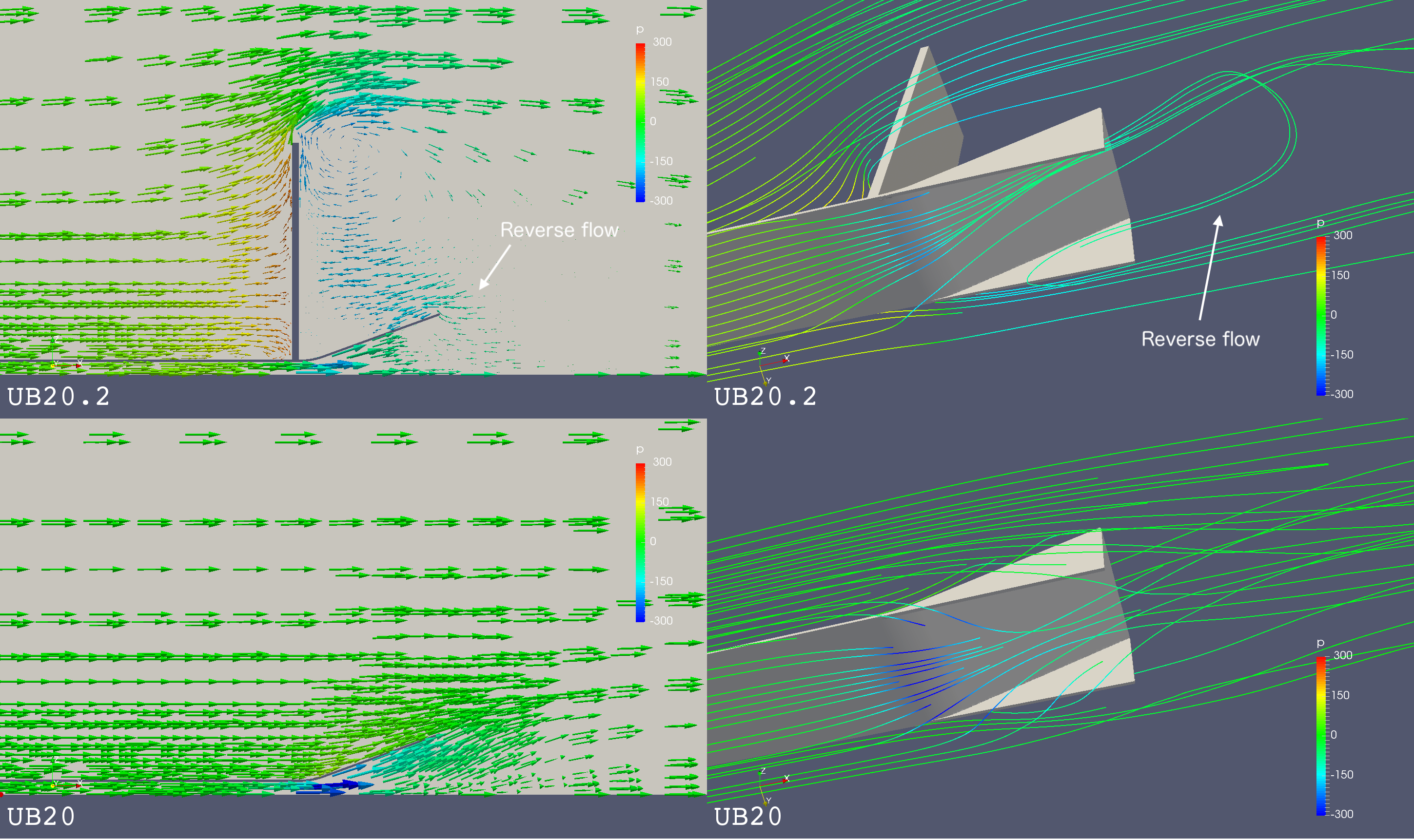 I found some features in the pressure result of your simulation UB20.2 comparing with UB20.