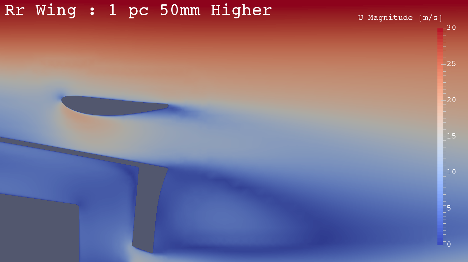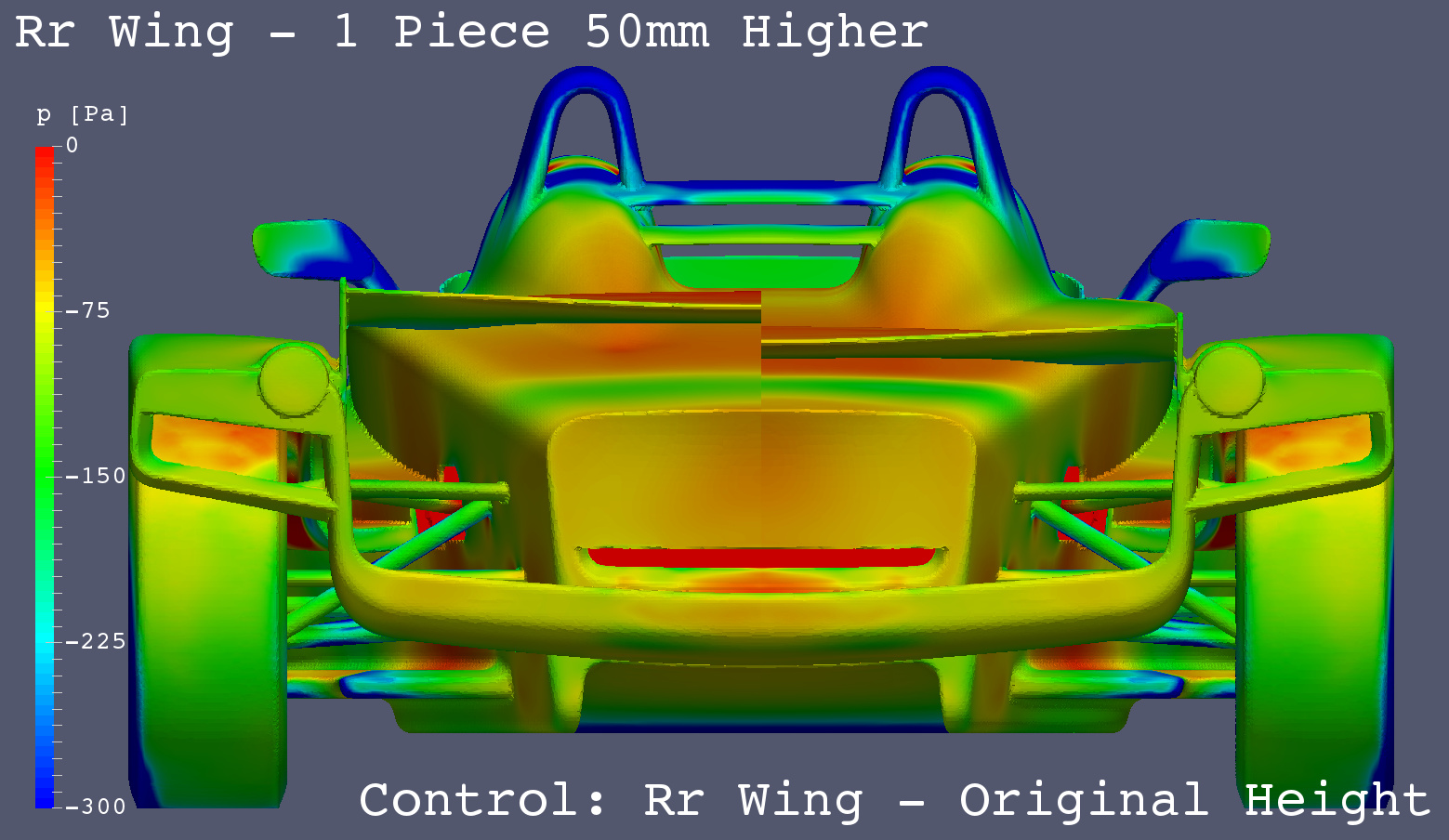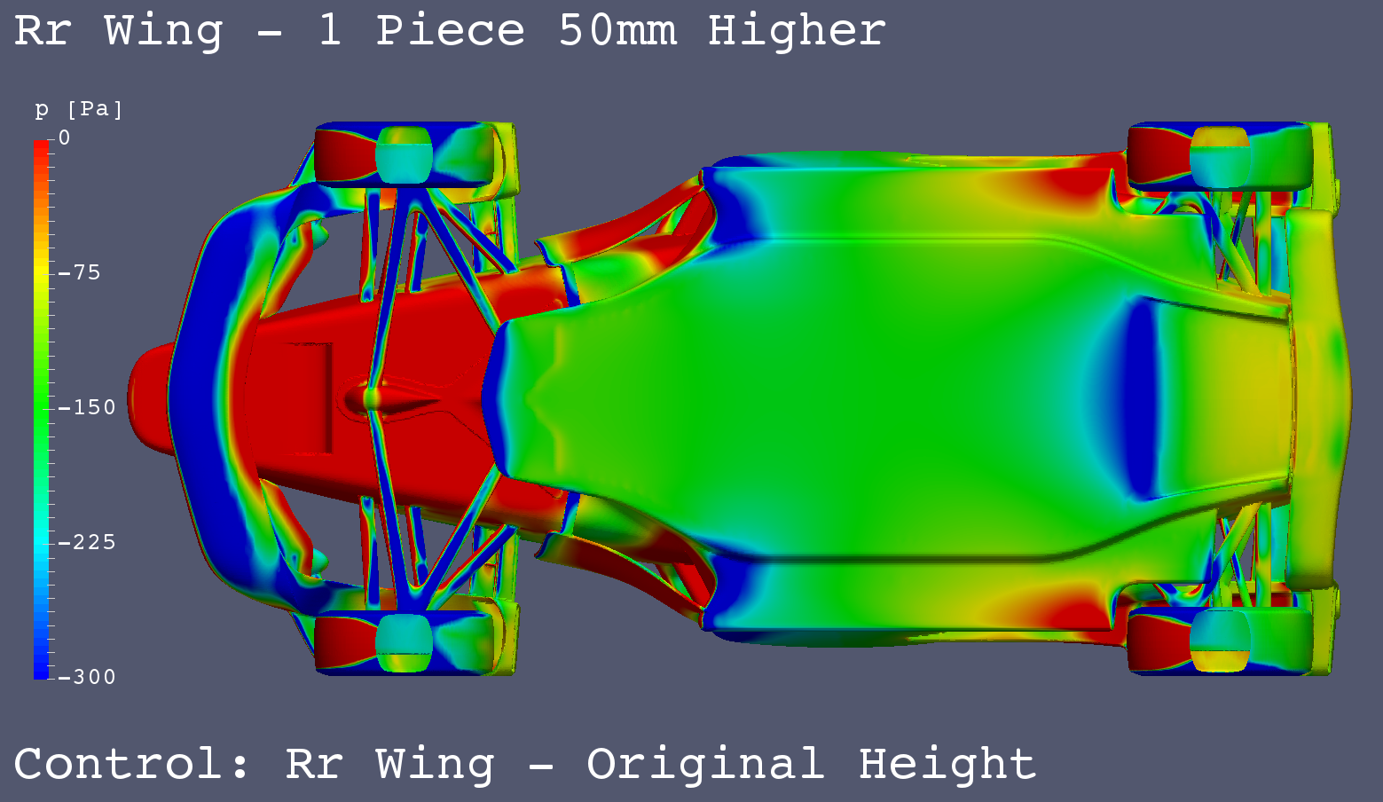 Rr Wing - 1 Piece 50mm Higher - Flow and Pressure Comparison