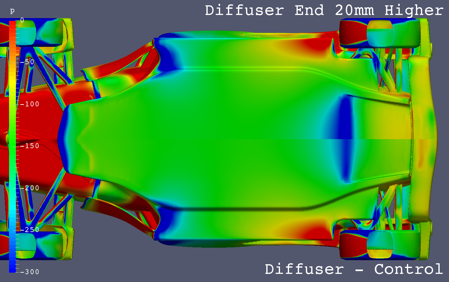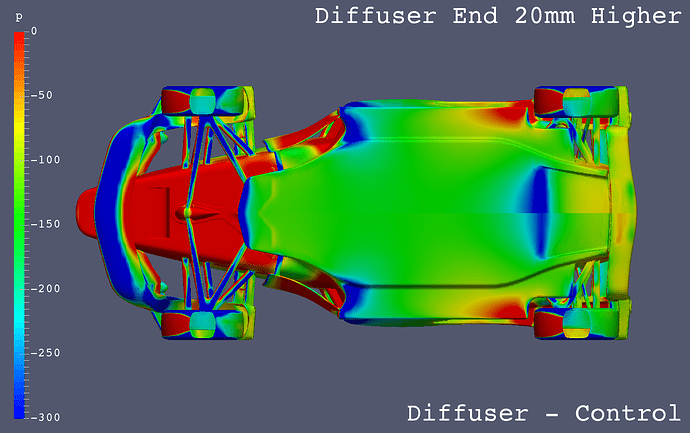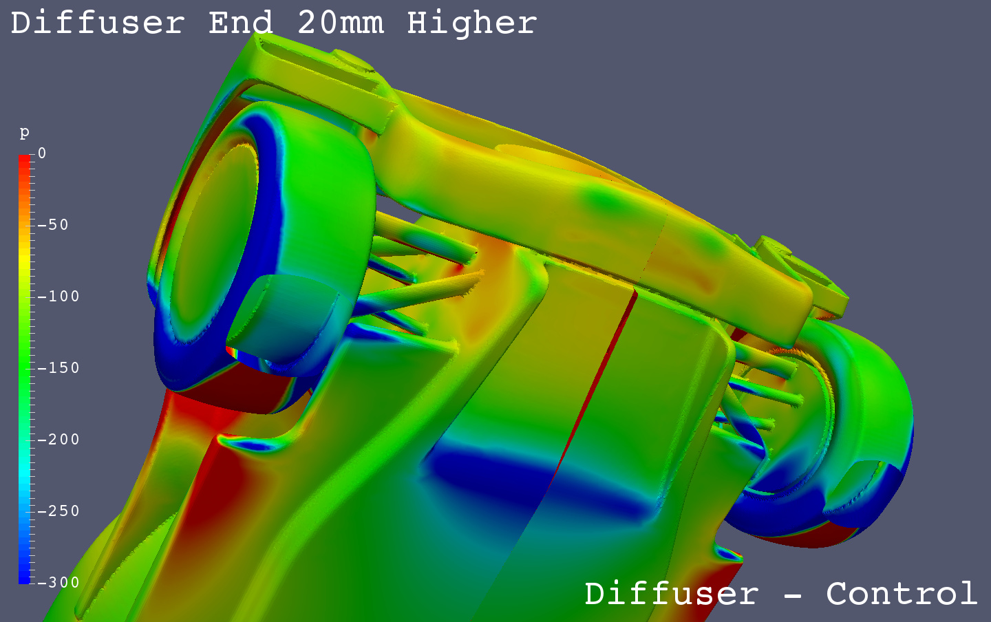 Rr Wing - 1 Piece 50mm Higher - Flow and Pressure Comparison