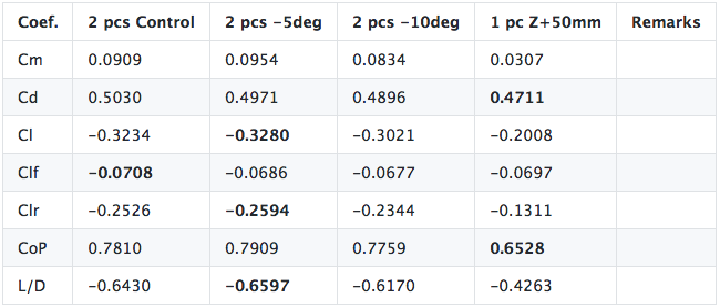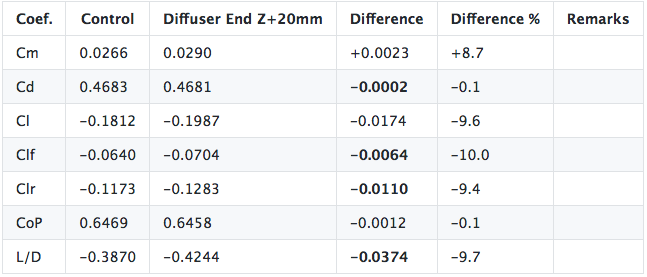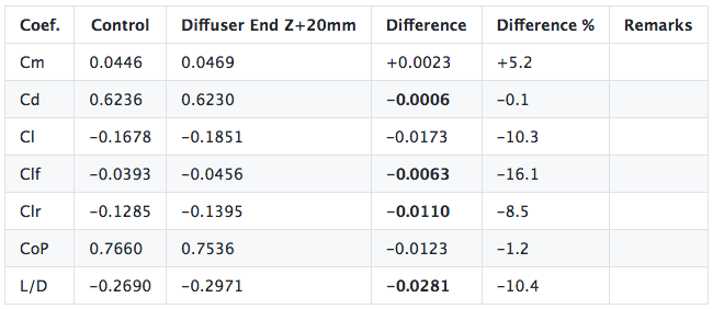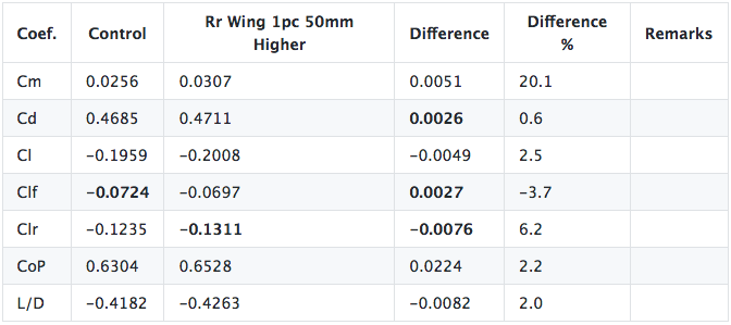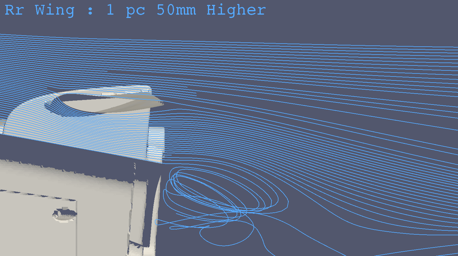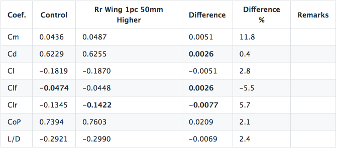 - ‘50mm Higher Rr Wing’ increases the drag slightly.