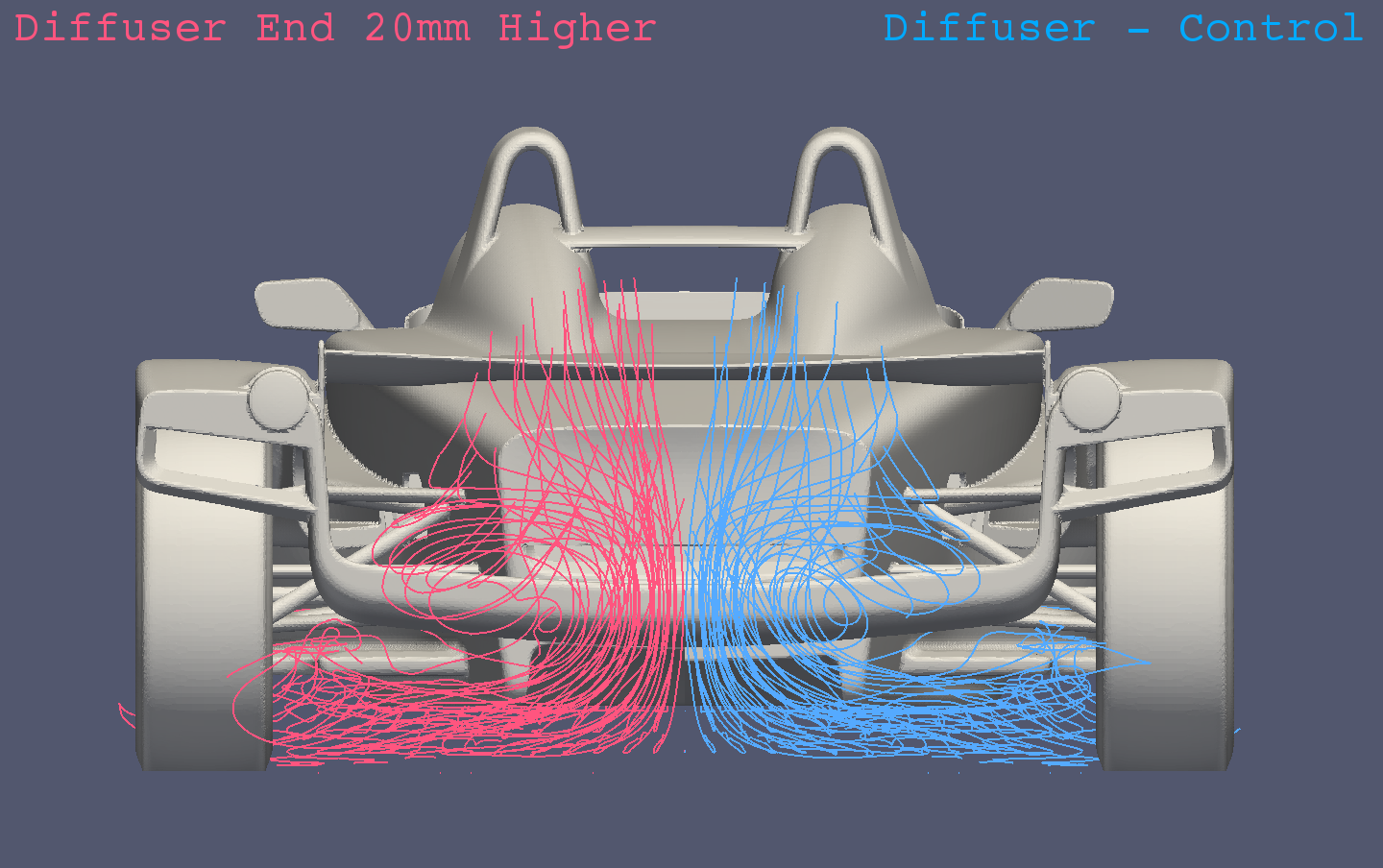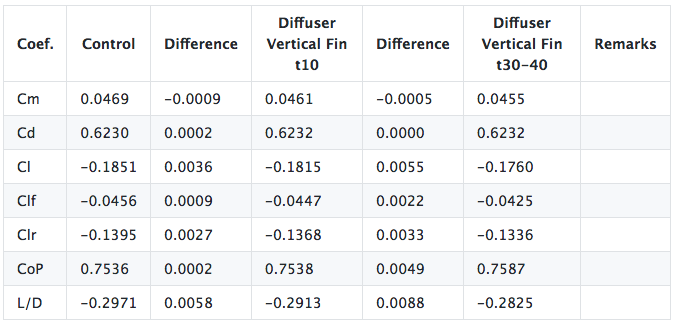 ‘Diffuser Vertical Fin - None’ is the best. These vertical fins decrease the downforces.