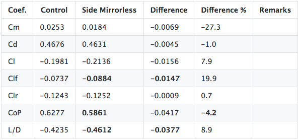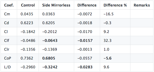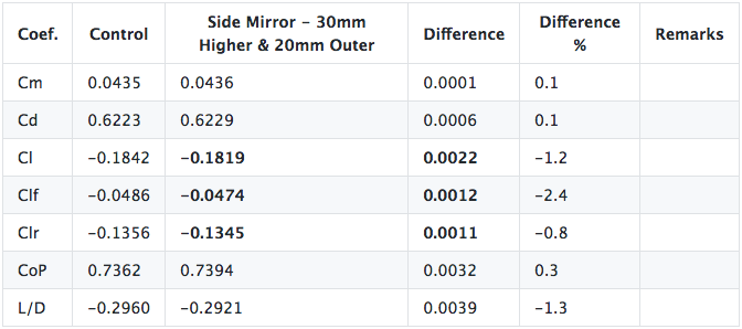 - ‘Side Mirror’ decreases the front downforce or increases the front lift force.