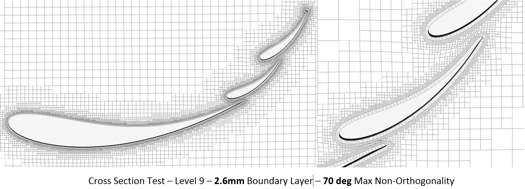 With final testing of the very small section geometry, I moved back to the larger section testing, as presented in the beginning of this article. The best settings from the localized problem area tests in rounds 3 and 4 were used. I decided to go with a 2.7mm boundary layer, right at the edge where deflation occurs, with a 65deg Max non-orthogonality. As you may have guessed, layer deletion occurred, however, this time I knew the solution.