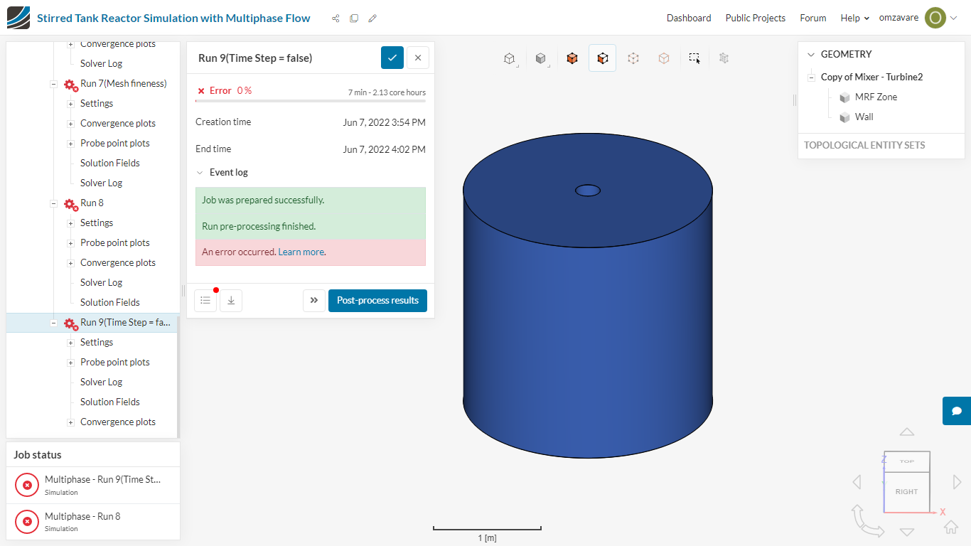 I have created two seperate volumes one is MFR Zone and a fluid volume. Still the error message dispalys âA multi-region mesh was assigned - this analysis-type requires a single-region mesh.â As this project is for my educational purpose i need to simulate it.